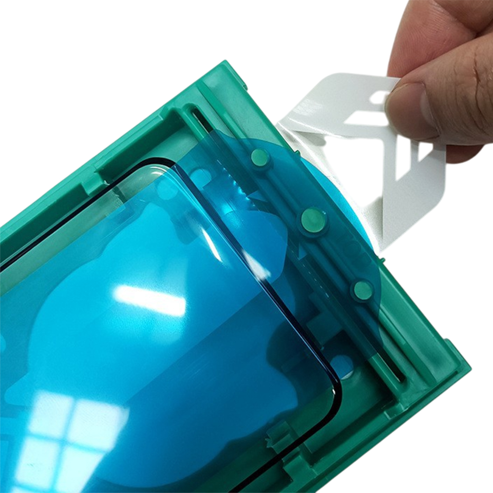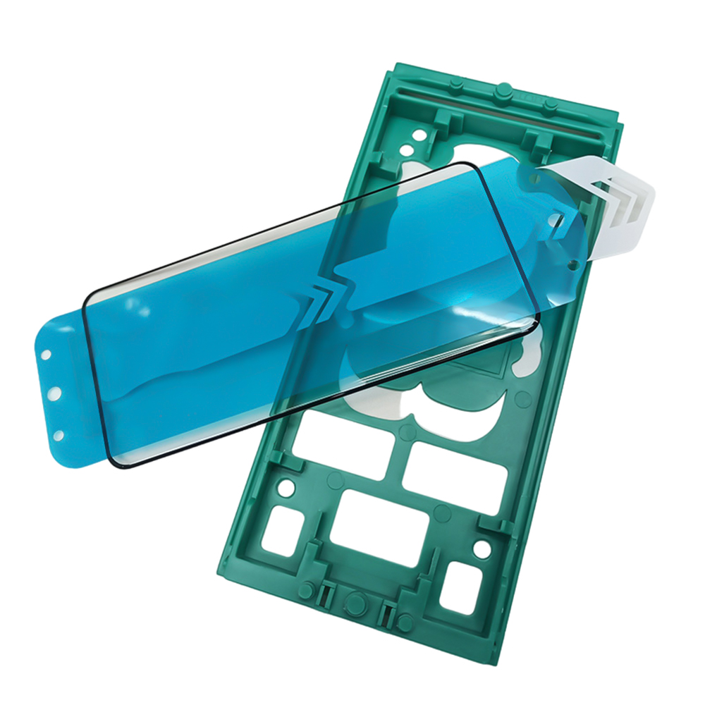 Установите рамку на смартфон — она точно зафиксирует положение стекла.