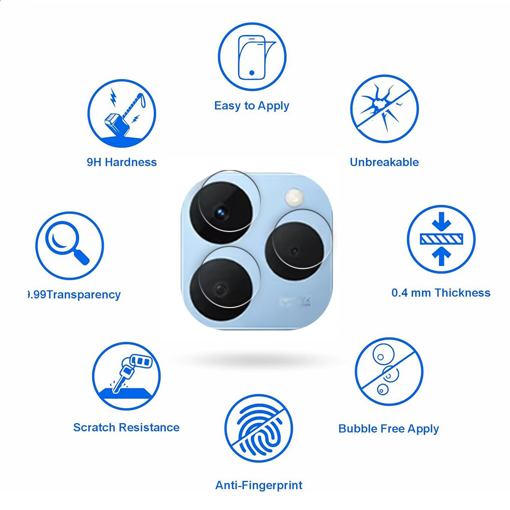Аксессуар легко устанавливается без пузырьков и следов клея, не требует дополнительных инструментов и не мешает использованию чехлов. Защитное стекло помогает сохранить камеру в отличном состоянии и продлить срок службы смартфона.