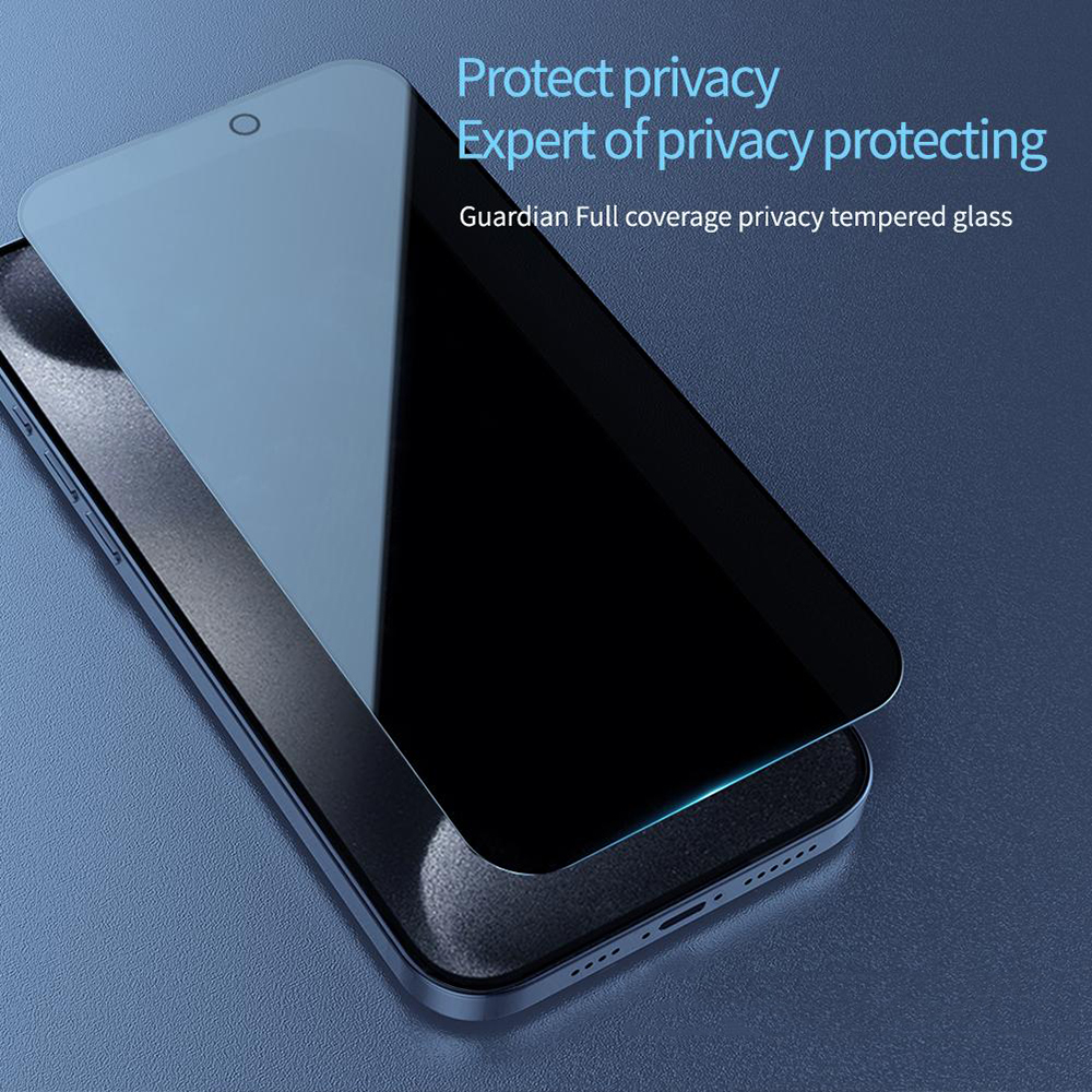 NILLKIN Gurdian Full Coverage Privacy – это суперзащитное стекло на экране Apple iPhone 15 Pro Max. Оно защищает не только от физических повреждений, но и от посторонних глаз. Его особенность заключается в специальном покрытии, что делает информацию с экрана невидимой для каждого смотрящего со стороны, тогда как для прямого пользователя все будет видимым на 100%. Само стекло производится из прочного закаленного материала, что сохранит не только от царапин, но и при небольших падениях с высоты. Минимальная толщина позволяет не снижать чувствительность сенсора и удобство работы со смартфоном. В комплекте прилагается набор вспомогательных средств, обеспечивающий простую и быструю установку. В комплект входит также закрывающийся бампер, благодаря которому вы сможете максимально защитить свой недешевый гаджет.