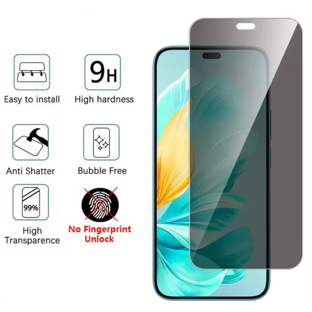 Захисне скло Privacy Full Screen – это суперзащитное стекло на экране Honor Magic 7 Pro.Оно защищает не только от физических повреждений, но и от посторонних глаз. Его особенность заключается в специальном покрытии, что делает информацию с экрана невидимой для каждого смотрящего со стороны, тогда как для прямого пользователя все будет видимым на 100%.
