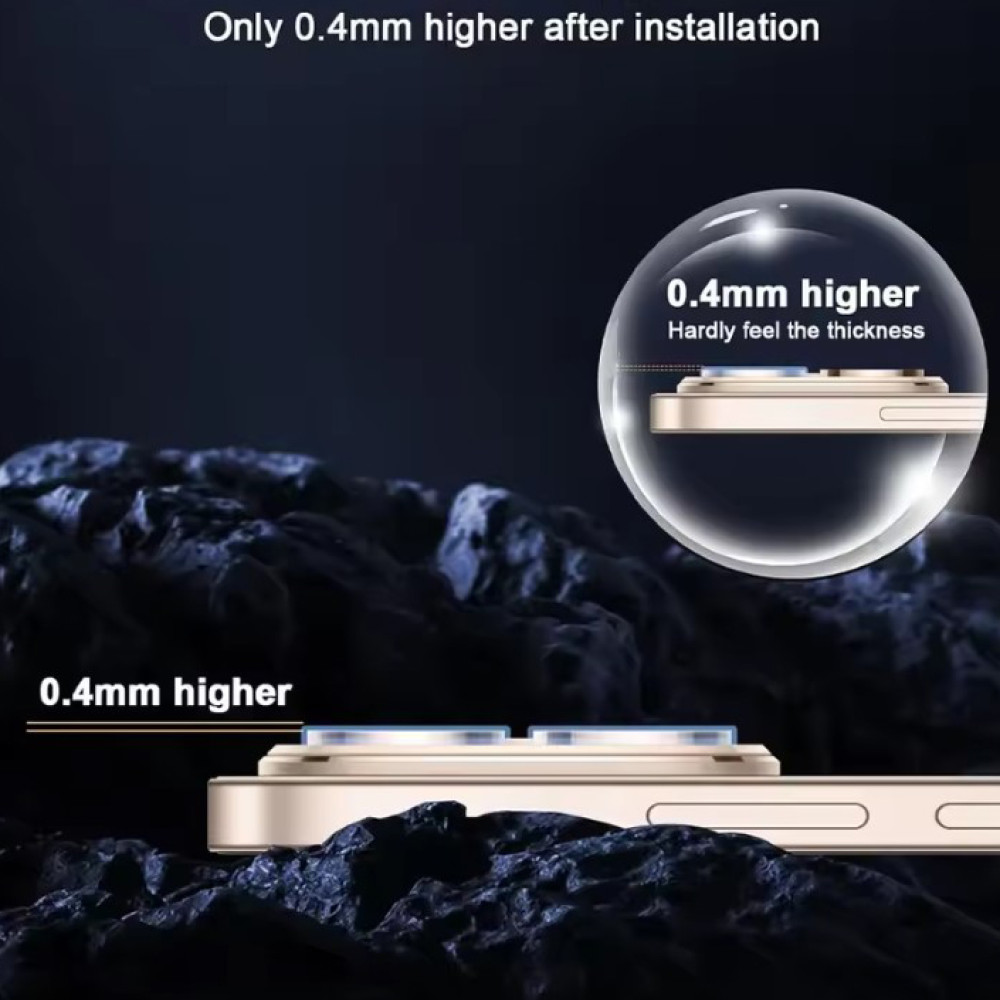 Стекло изготовлено из прочного закалённого материала, который защищает линзы от царапин, потёртостей, пыли и мелких ударов в процессе повседневного использования. Благодаря высокой прозрачности оно не влияет на качество фото и видео, сохраняя чёткость и естественную передачу цветов.