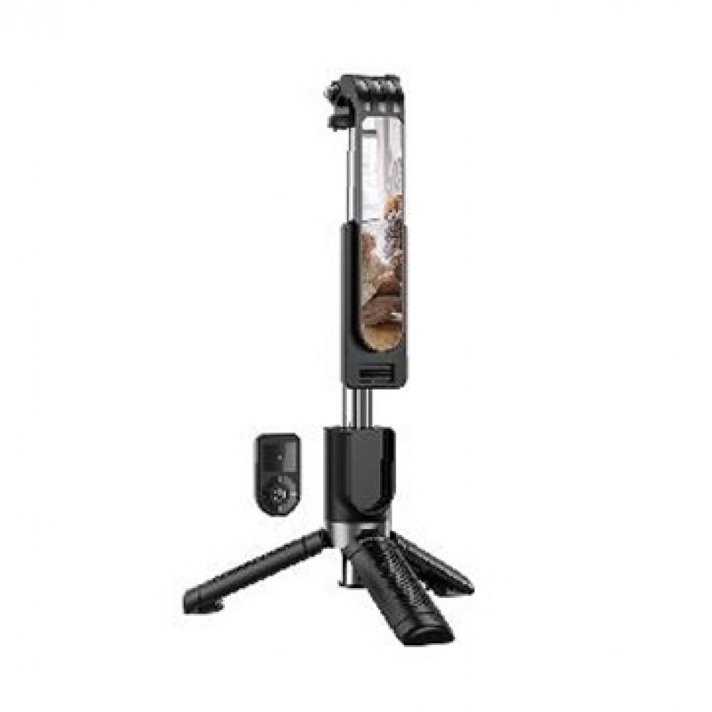Селфи-палка с Bluetooth-подключением (v 4.0) и встроенным триподом; совместимый с большинством iPhone и Android смартфонами шириной от 6,2 см до 8,5 см (до 7"); в раскрытом состоянии длина трубы равна 75 см; в сложенном состоянии длина монопода равна 15,5 см; угол наклона - 180 градусов; смартфон в креплении сидит надежно, не ускользает, для удобства использования задней камеры на тыльной стороне держателя встроенное зеркало, со съемным мини-пультом для управления фотосъемкой на расстоянии до 10 м