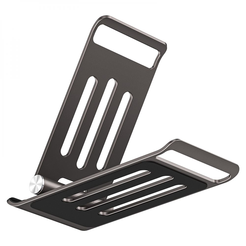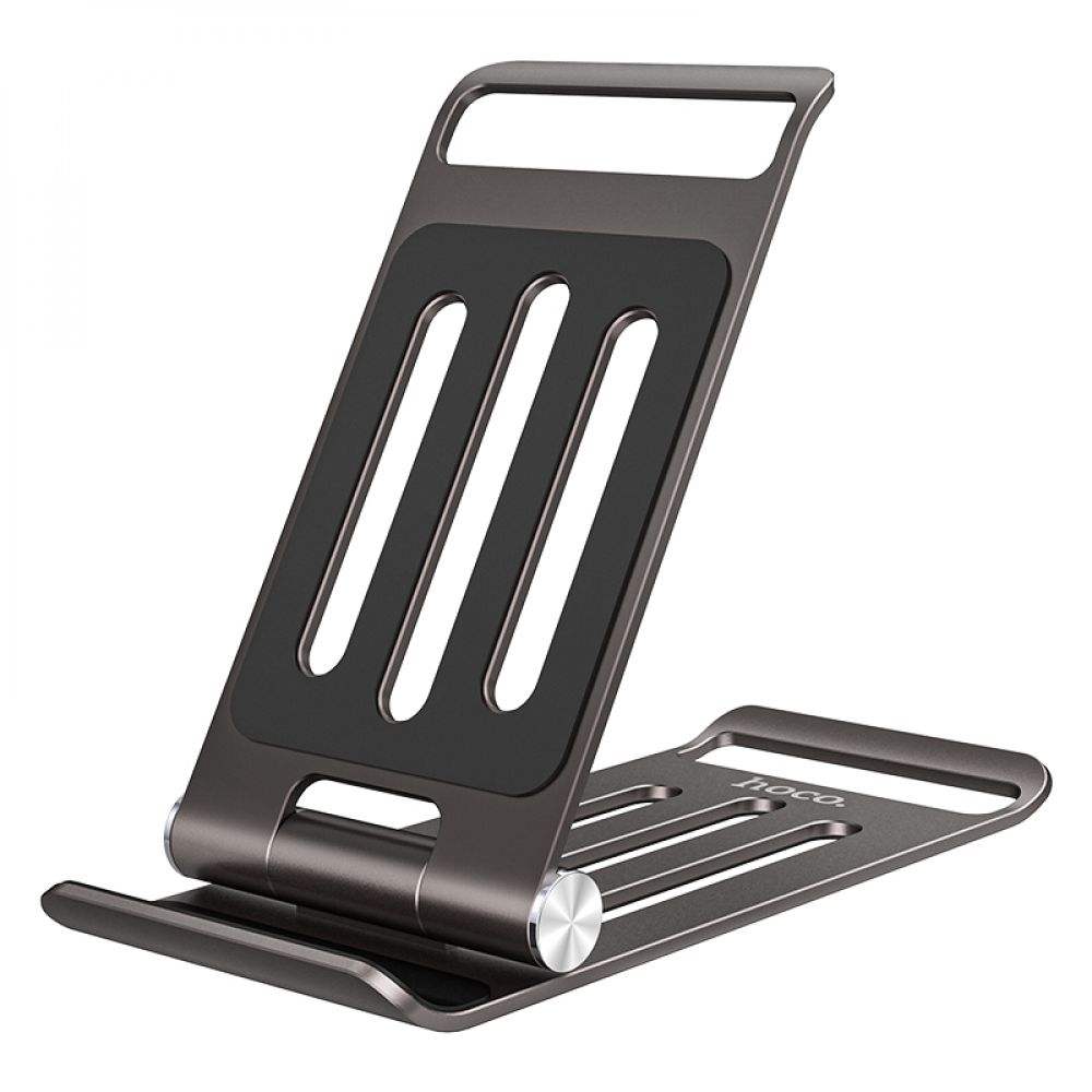 Настольный держатель Hoco PH49 Elegant metal folding - это надежная подставка, которая поможет расположить смартфон или планшет в удобном положении под необходимым углом на любой горизонтальной поверхности для их наиболее комфортного использования во время просмотра фильмов, проведения прямых трансляций или онлайн занятий. Модель реализована в стильном, минималистичном дизайне, имеет компактные размеры, небольшой вес и практичную складную конструкцию. В сложенном состоянии она не займет много места на рабочем столе или в его ящике, может носиться, например, на работу в офис в сумочке или даже в кармане. Аксессуар изготовлен из сверхпрочной углеродистой стали, дополнен силиконовыми накладками, которые предотвратят его скольжение по поверхности и защитят корпус гаджета от царапин и потертостей. Прорези со скругленными углами не только подчеркивают привлекательный внешний вид аксессуара, но и значительно облегчают его вес и способствуют свободной циркуляции воздуха для охлаждения устройства. Нижний изогнутый край верхней панели подставки обеспечивает дополнительную безопасность гаджета, предотвращая его соскальзывание. Модель предназначена для смартфонов и планшетов диагональю 4,7-10,5". Ее размеры в сложенном виде равны 49*104*14мм, в разложенном - 49*104* 90мм.