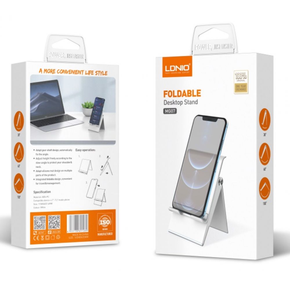 Настольный держатель Ldnio MG07 - универсальный, практичный аксессуар, который сделает использование смартфонов и планшетов максимально комфортным. Модель выделяется простотой в эксплуатации, обладает привлекательным внешним видом, компактными размерами и небольшим весом. Ее детали имеют приятную на ощупь поверхность, изготовлены из ABS пластика и поликарбоната, отличаются стойкостью к повышенным нагрузкам. Складная конструкция аксессуара предоставит возможность с легкостью брать его с собой, например, на работу или учебу, состоит из задней панели с шарниром для изменения угла наклона и передней панели с платформой-слайдером для регулировки высоты. Изогнутая нижняя часть подставки с мягкими накладками предотвратит соскальзывание гаджета и образование потертостей на его боковой грани. Модель совместима со смартфонами и планшетами с диагональю 4.7 - 7.2 дюйма.