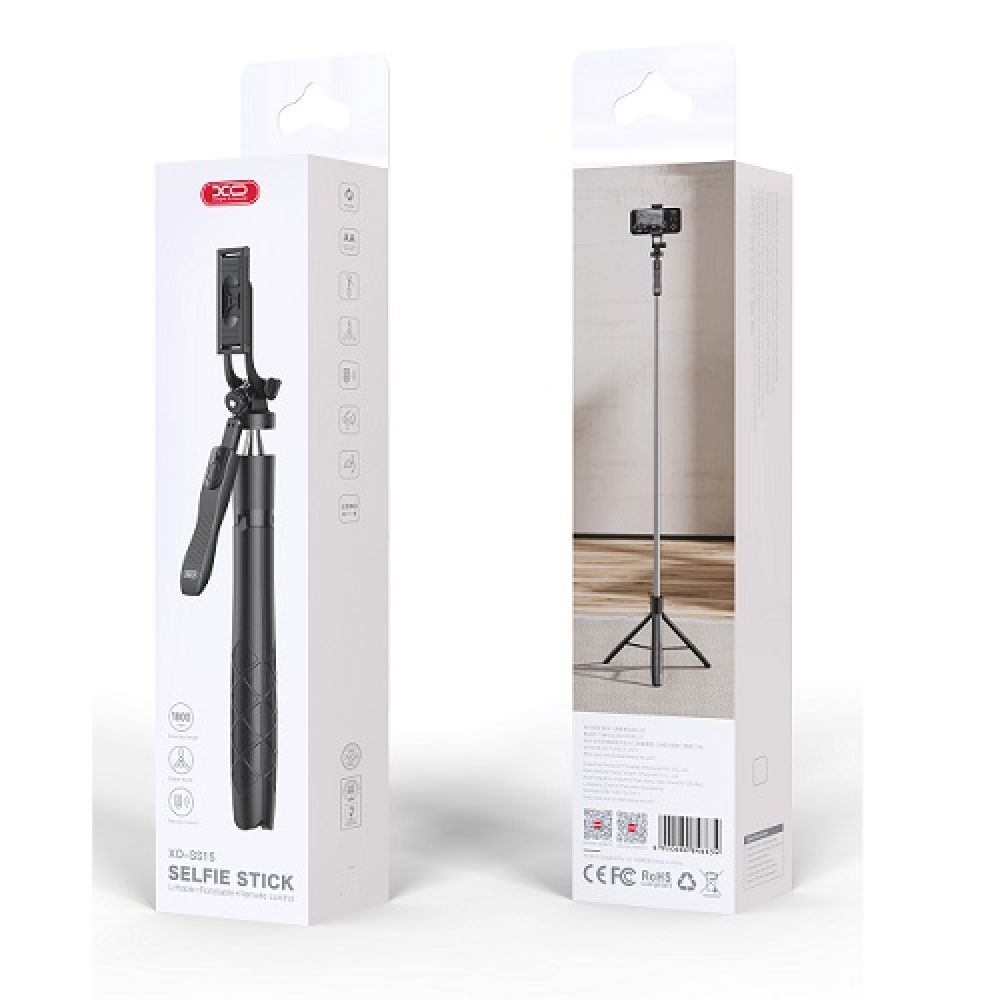 Селфи-штатив-стабилизатор XO SS15 – это практичный аксессуар, который станет настоящим помощником при самостоятельной съемке фото и видео на смартфон. Модель выполнена в стильном дизайне, имеет небольшой вес и усовершенствованную конструкцию. Его отличительной особенностью является наличие дополнительной рукоятки, которая в сочетании с шарнирным соединением предоставит возможность плавно вращать удерживаемый смартфон для качественной съемки динамичных сцен. Детали его держателя и рукояток изготовлены из стойкого к нагрузкам ABS пластика, а секции телескопического штатива – из нержавеющей стали. Длина штатива в сложенном виде составляет 336мм, в полностью разложенном – 1800мм. Универсальный держатель совместим со смартфонами с диагональю 4.2 - 6.7", обеспечивает надежную фиксацию с возможностью горизонтальной и вертикальной съемки. Эргономичная рукоять штатива имеет приятную на ощупь поверхность с рельефным узором, может трансформироваться в треногу для его установки на горизонтальную поверхность. В слоте на дополнительной рукоятке находится съемная кнопка, которая оснащена модулем Bluetooth V4.2 и предназначена для удаленного управления съемкой на смартфонах под управлением Android 4.4 и выше, а также iOS 5.1 и выше. Источником питания для нее служит съемная батарейка стандарта CR1632.