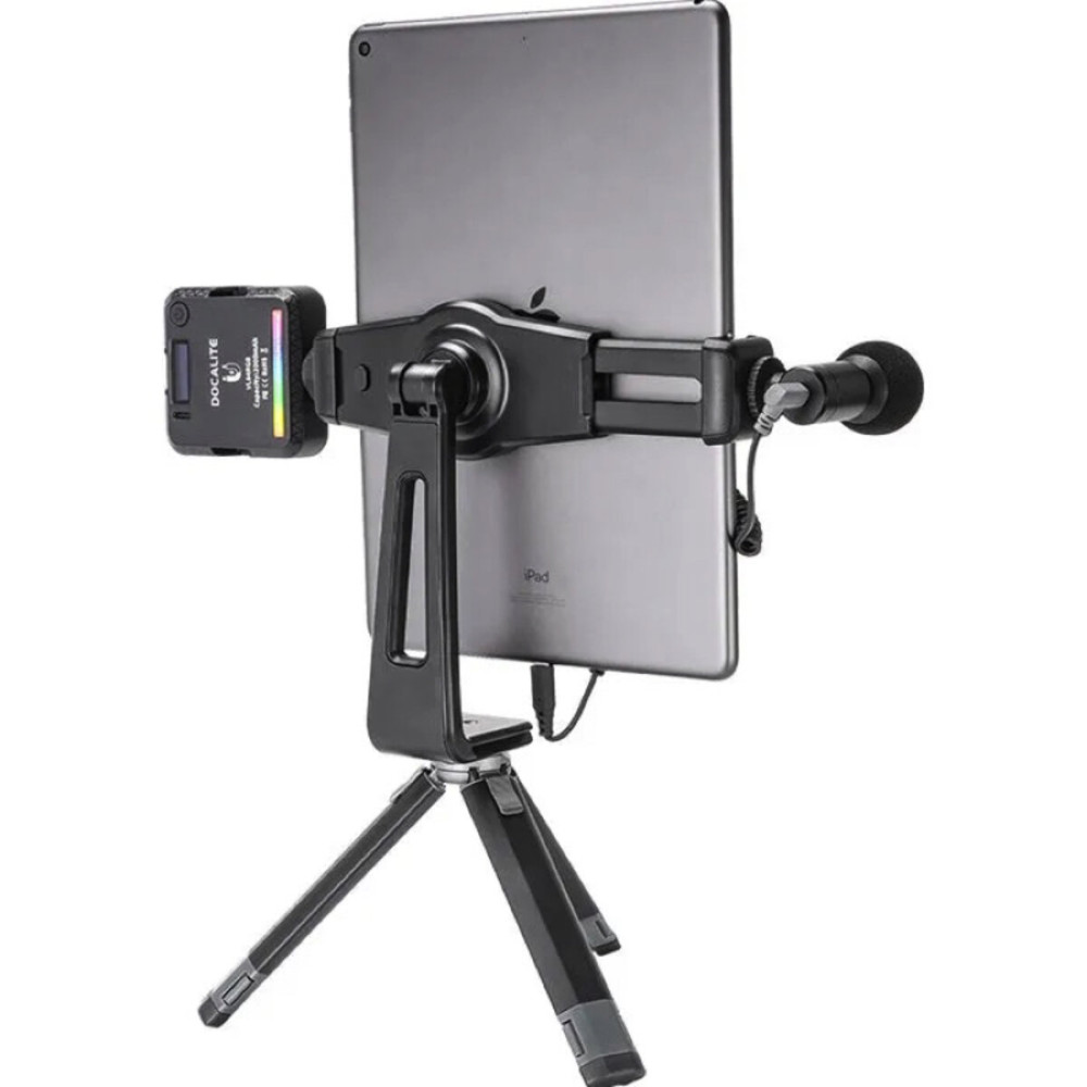 С обеих сторон держателя присутствуют крепления для холодного башмака. Наличие двух позволяет устанавливать одновременно микрофон и освещение на один держатель. В нижней части держателя планшета или смартфона расположено крепление 1/4 и ARCA. Последнее существенно ускоряет установку и увеличивает количество совместимых устройств.