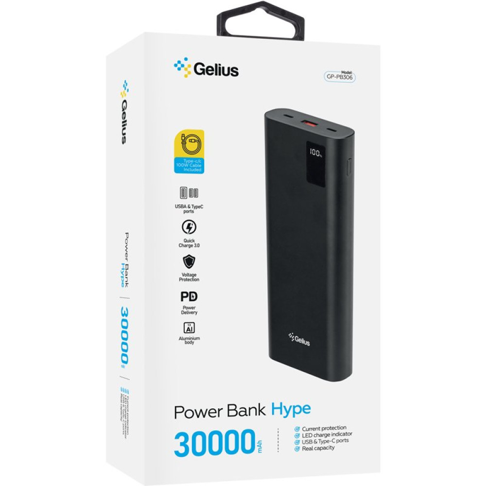 Высокая емкость и мощностьПовербанк Gelius Hype на 30000mAh обеспечивает невероятную энергоемкость, которая позволит заряжать ваши устройства в течение длительного времени без необходимости постоянного подключения к розетке. Благодаря большой выходной мощности в 100W вы даже можете зарядить свой ноутбук, что делает этот повербанк идеальным решением при отключениях света, для путешествий и длительных поездок.Быстрая зарядкаGelius Hype поддерживает современные стандарты быстрой зарядки Power Delivery и QC 3.0, что позволяет значительно сократить время зарядки ваших устройств. Вы сможете быстро восстановить заряд не только смартфона, но и других гаджетов, поддерживающих эти технологии.Зарядка до 3-х устройствЭтот повербанк оснащен тремя выходными портами – двумя Type-C и одним USB-A, что позволяет заряжать сразу три устройства одновременно. Вы больше не будете ограничены в возможности зарядки своих гаджетов, где бы вы ни находились. Входной порт Type-C позволяет быстро заряжать саму батарею.Мощный кабель в комплектеВ комплекте с повербанком Gelius Hype идет мощный 1-метровый кабель Type-C/Type-C на 100W. Этот кабель обеспечивает высокую скорость передачи энергии, что позволяет максимально эффективно использовать возможности повербанка.Качественное исполнениеПовербанк Gelius Hype имеет крепкий металлический корпус, что обеспечивает его долговечность и защиту от повреждений. Дополнительная батарея поможет максимально долго сохранить рабочие параметры АКБ заряжаемых устройств благодаря встроенной многоуровневой системе защиты.Кроме того, удобный в использовании информативный дисплей позволяет всегда быть в курсе уровня заряда батареи, что делает использование этого аксессуара еще более удобным и комфортным.
