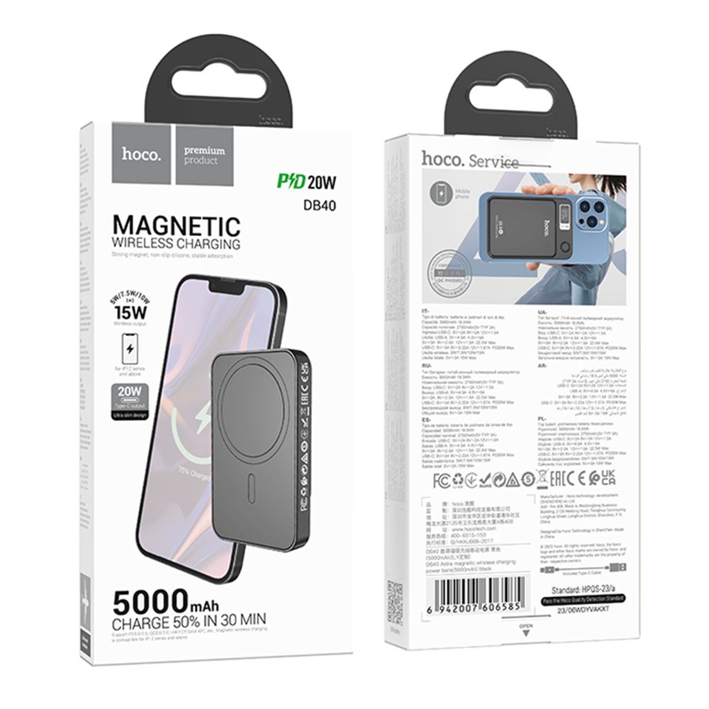 Power Bank Hoco DB40 River — это стильное и мощное портативное зарядное устройство с магнитной беспроводной зарядкой. С ёмкостью 5000mAh он идеально подходит для быстрой зарядки вашего смартфона и других устройств. Благодаря удобному магнитному креплению, вы можете заряжать свои гаджеты без лишних проводов.