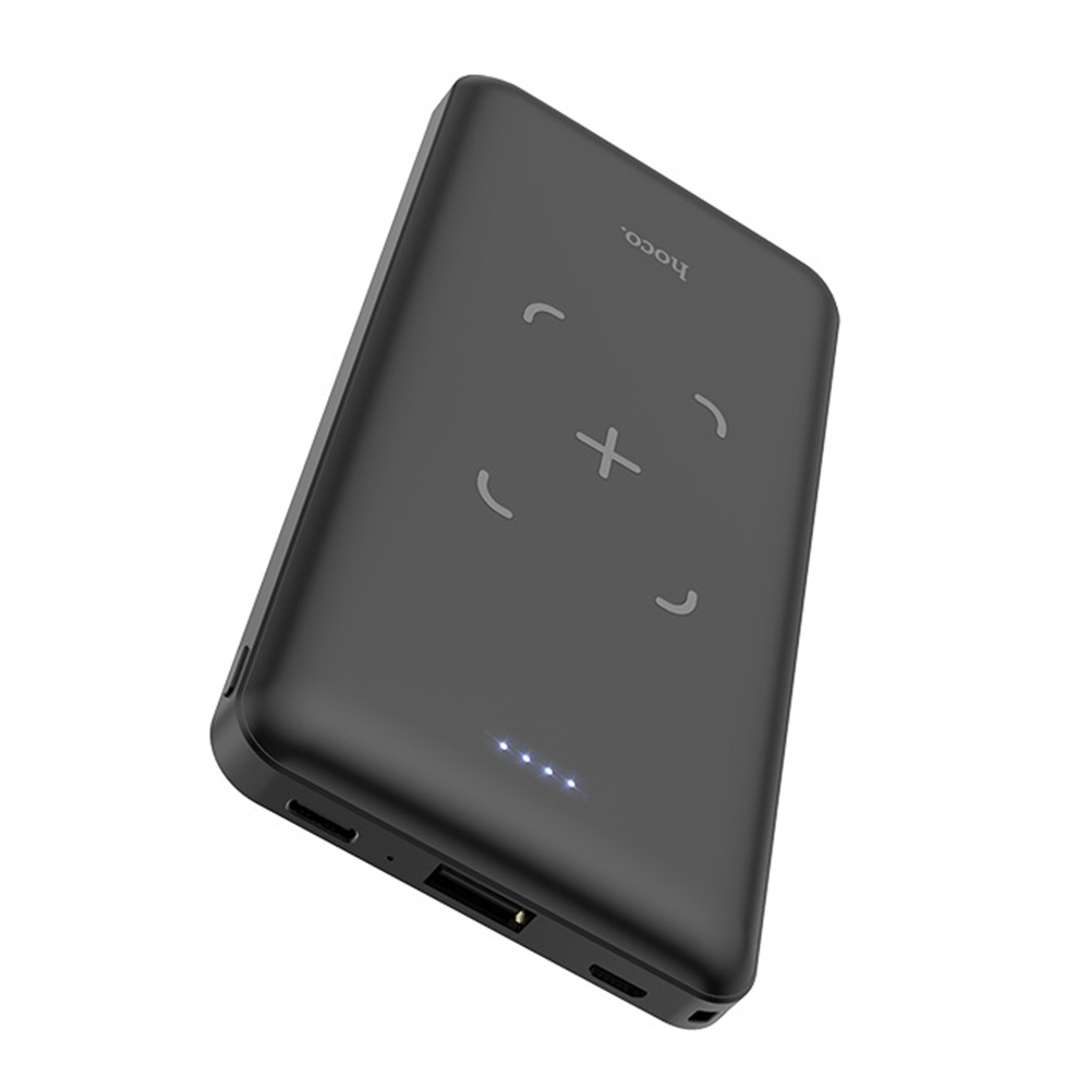 Павербанк Hoco J50 выгодно выделяется среди других конкурентов благодаря тому, что он поддерживает технологию беспроводной зарядки Qi. На корпусе устройства есть специальное место для установки телефона, то есть просто поставив в эту точку телефон, который также поддерживает данную функцию процесс зарядки начнется. При таком типе подзарядки выходная мощность составляет до 5W. Также от Powerbank Hoco J50 другие устройства можно заряжать классически через порт USB, сила выходного тока порта составляет до 2.0А.