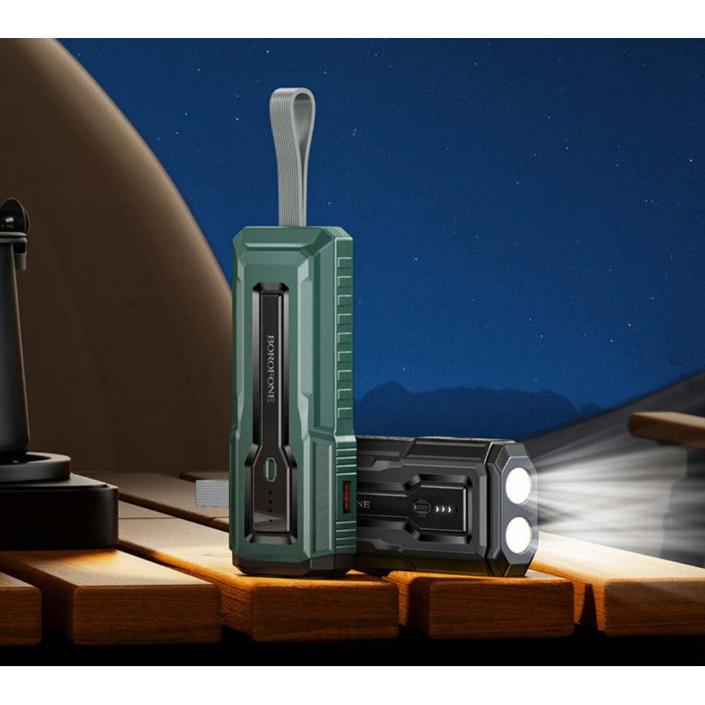 Внешний аккумулятор BOROFONE BJ54 Graceful с встроенным фонариком и ремешком обеспечит бесперебойную работу ваших устройств, где бы вы ни находились. Корпус из ABS-пластика и поликарбоната не только придаёт стильный вид, но и обладает огнестойкими свойствами, что делает его надёжным и безопасным в использовании.