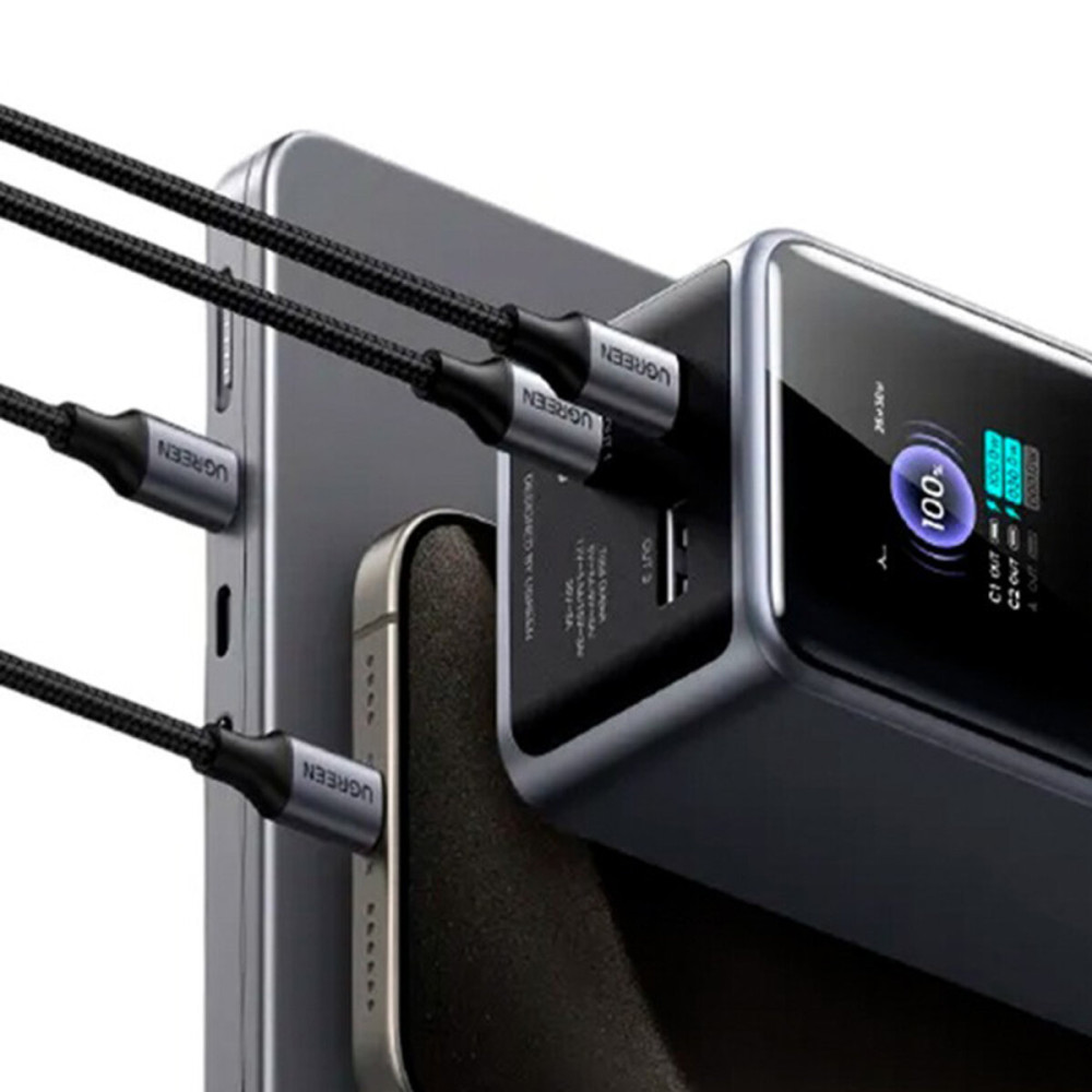 Внешний аккумулятор UGREEN PB721 20000mAh 130W — это мощный и компактный Power Bank, который обеспечивает молниеносную зарядку даже для ноутбуков. Оснащён двумя портами USB-C (100 Вт + 30 Вт) и одним USB-A, он позволяет одновременно заряжать до трёх устройств.