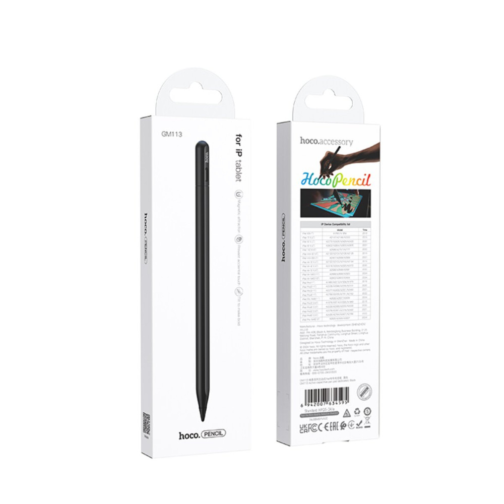 Стилус HOCO GM113 — это высококачественный аксессуар для вашего устройства, который обеспечит комфортное и точное использование. Он поддерживает все современные модели iPad (версии после 2018 года), обеспечивая точное и плавное управление для максимального комфорта использования. Это делает его идеальным решением для пользователей, которые ищут качественный инструмент для взаимодействия с iPad.