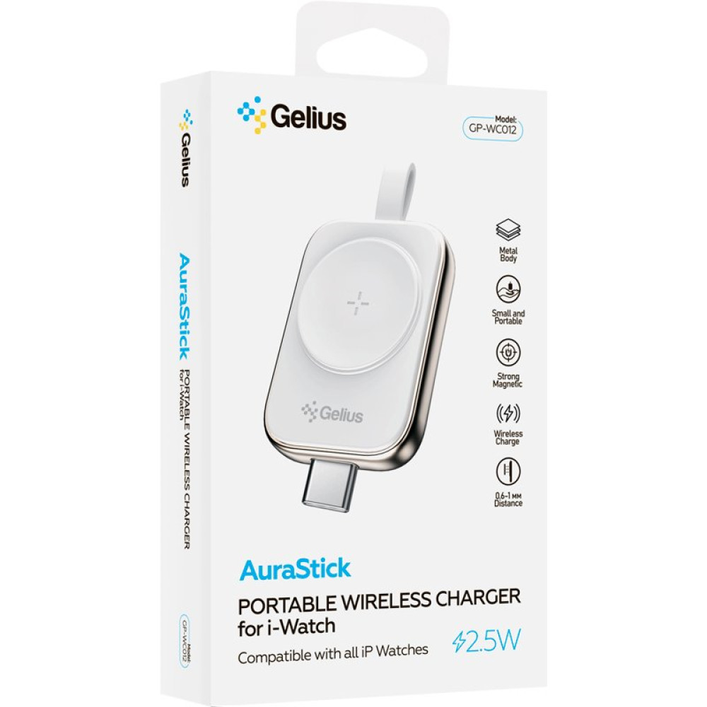 Беспроводное зарядное устройство для Apple Watch Gelius AuraStick отличается своей компактностью и портативностью. Благодаря своему минималистичному дизайну он легко помещается в карман или сумку, что делает его идеальным для использования дома, на работе или в путешествиях. Его вес и размеры позволяют всегда иметь под рукой надежное зарядное устройство для Apple Watch.