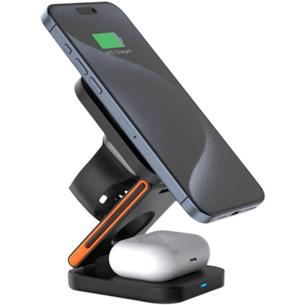 Магнитное крепление надёжно фиксирует смартфон под любым углом — удобно смотреть видео, работать или переписываться. Станция легко складывается в компактную форму для хранения или перевозки и раскладывается в устойчивую конструкцию, готовую к работе.