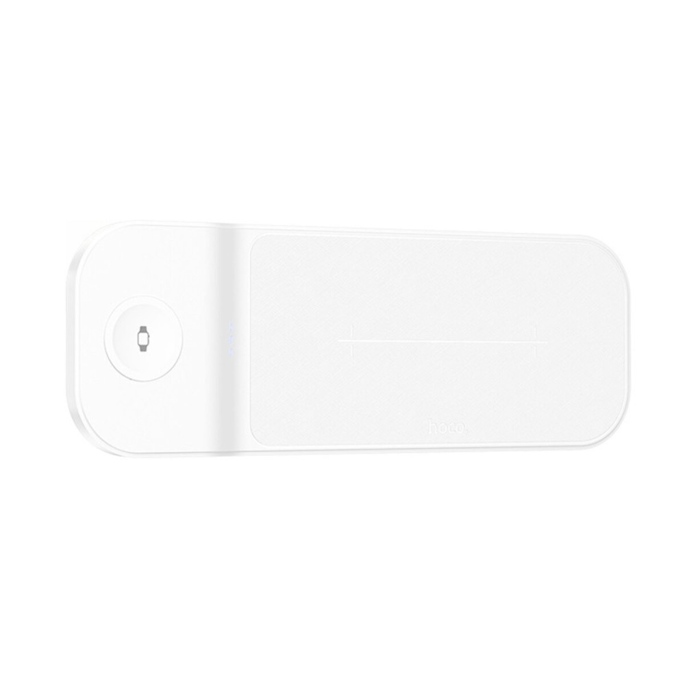 Беспроводное зарядное устройство HOCO CQ6 Power 3-in-1 wireless fast charger (SAM Watch) White — одно из лучших разработок компании Hoco. Преимущество зарядного устройства — это зарядка трех устройств одновременно: смартфона, смарт-часов и наушников. Это устройство поддерживает функцию быстрой зарядки и подходит для зарядки только того телефона, который поддерживает беспроводную зарядку.