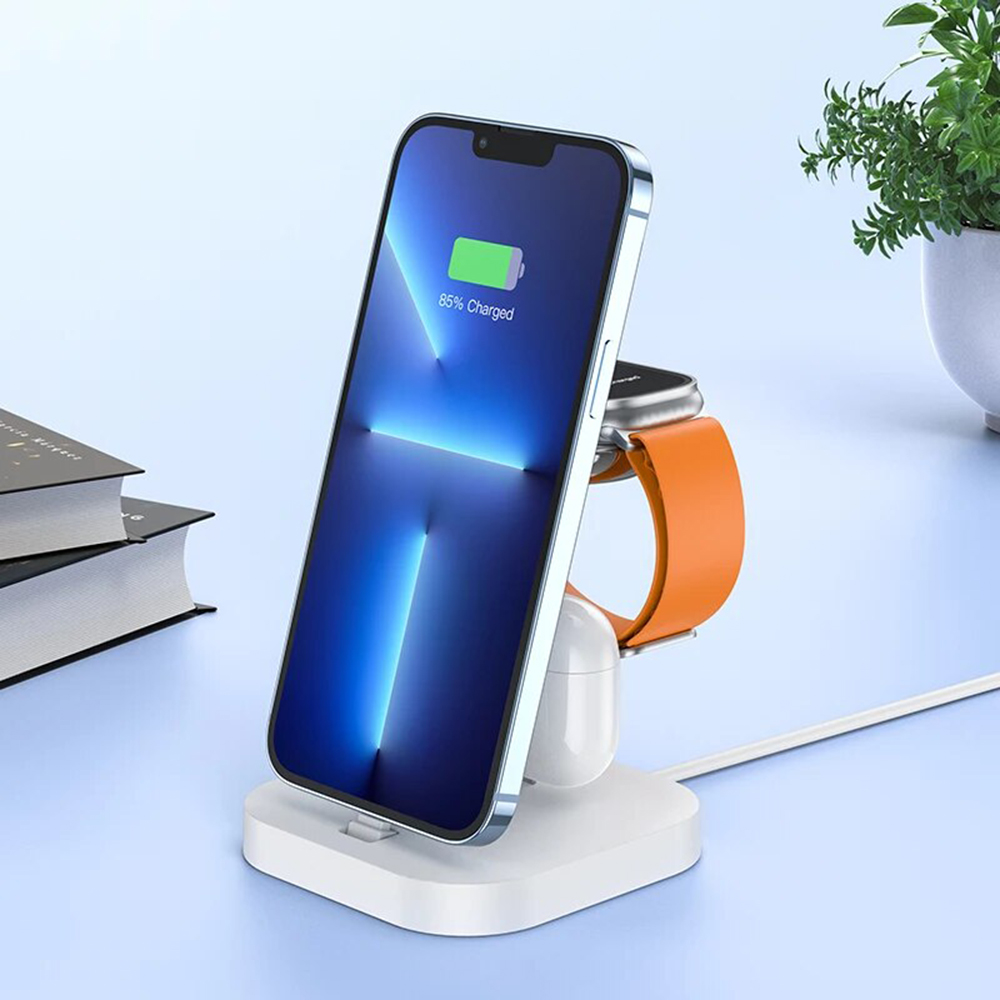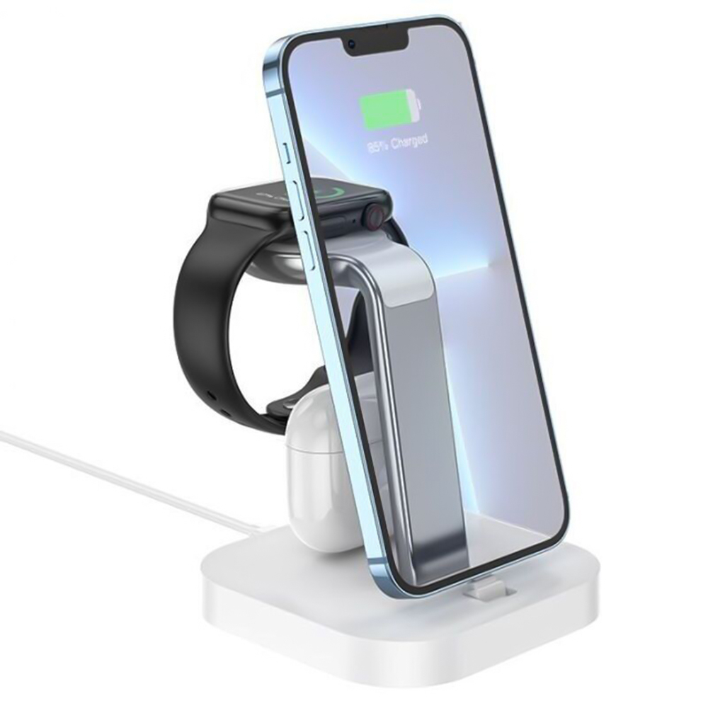 Беспроводное зарядное устройство Hoco CW43 сможет одновременно зарядить iPhone (до 14 версии включительно), наушники с Lightning-портом и Apple Watch. Элегантный дизайн гармонично впишется в любой интерьер, а качественные материалы обеспечат длительный срок службы. Зарядка максимально удобна и практична для использования зарядки. К тому же Hoco CW43 может быть стильной подставкой для телефона или планшета, позволяя разместить их вертикально или горизонтально.