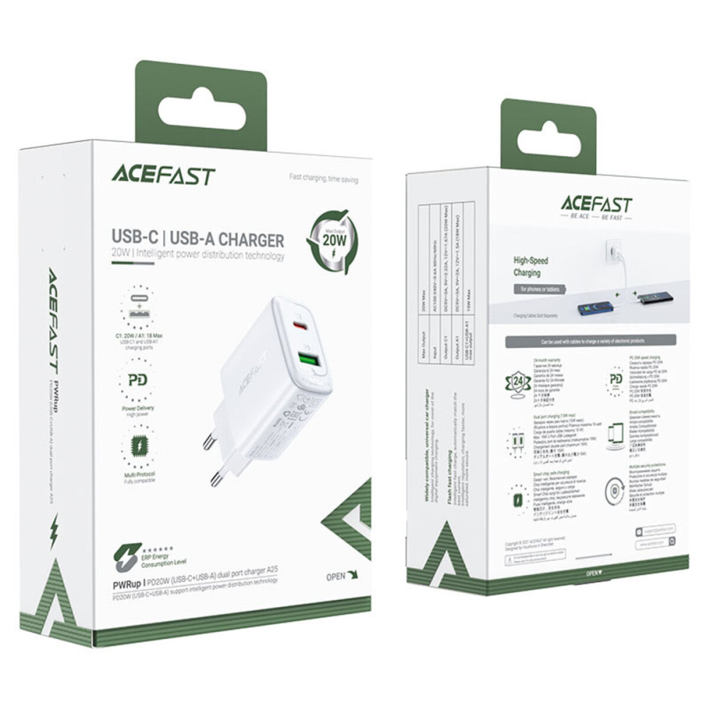 ACEFAST A25 — универсальный адаптер с двумя портами для быстрой зарядки
