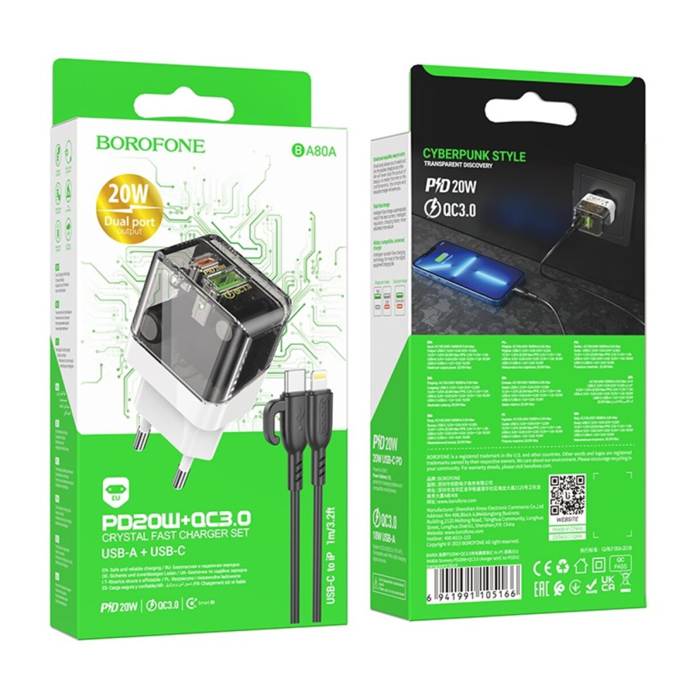 Сетевое зарядное устройство BOROFONE BA80A Scenery оснащено портами Type-C и USB-A, обеспечивая удобную и эффективную зарядку ваших устройств. Оно совместимо с большинством современных гаджетов: пауэрбанками, смартфонами, планшетами, акустическими системами разных производителей.