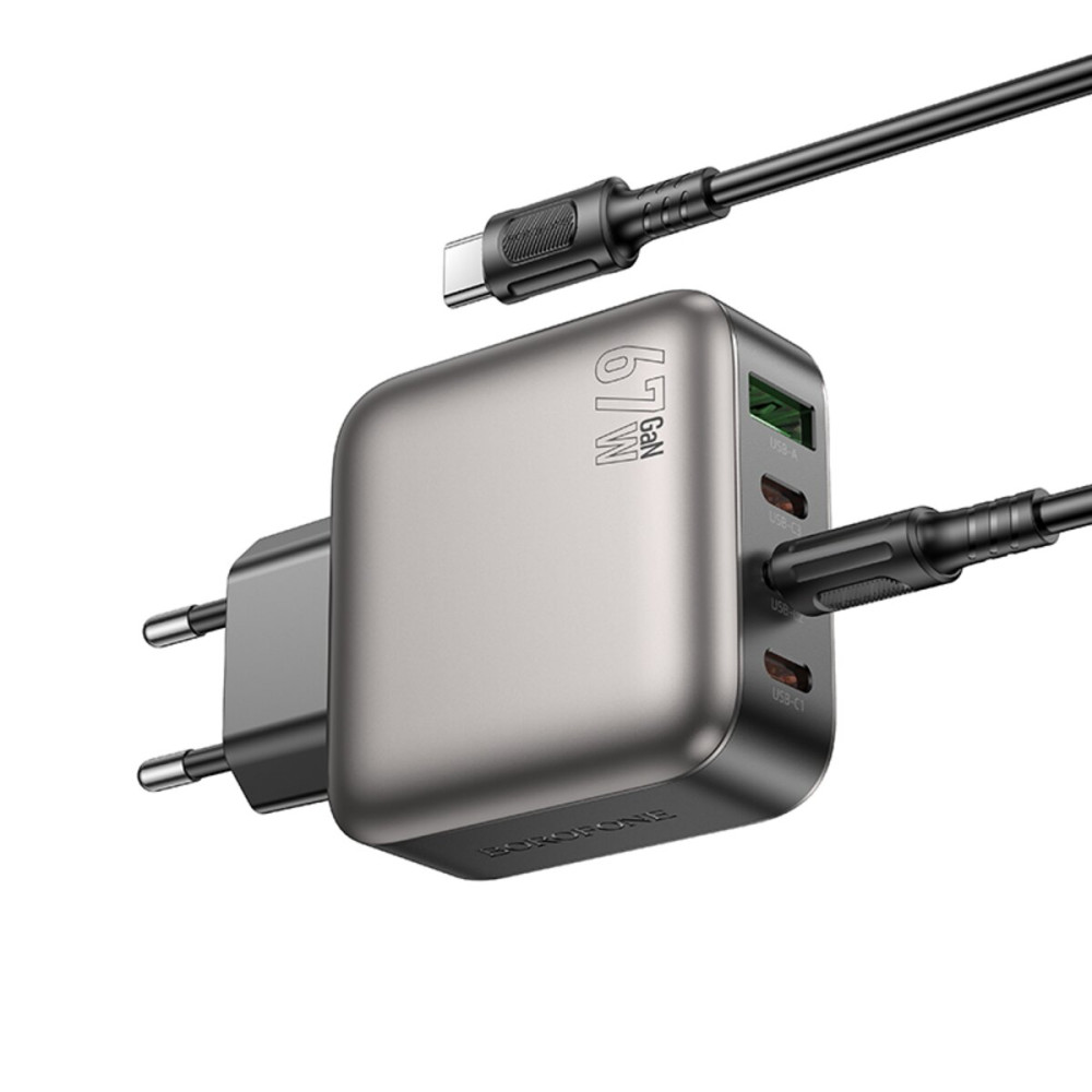 Сетевое зарядное устройство BOROFONE BAS57A Absolute имеет три порта Type-C и один порт USB-A для эффективной зарядки ваших девайсов. Он совместим со многими современными устройствами: повербанками, смартфонами, планшетами, акустическими системами разных производителей. Максимальная выходная мощность адаптера составляет 67 Вт. Имеется поддержка протоколов быстрой зарядки PD67W, PPS, SFC, QC2.0, QC3.0, FCP, AFC, SCP. Корпус из качественного ABS-пластика не только придает стильный вид, но и имеет компактный размер, благодаря чему это зарядное устройство будет надежным спутником в любом путешествии, обеспечивая быструю и эффективную зарядку ваших любимых гаджетов, где бы вы ни находились. Высококачественные материалы, многоуровневая система защиты и производственные стандарты обеспечивают долговечность и надежность зарядного устройства. Поставляется в комплекте с кабелем Type-C to Type-C с мощностью подзарядки до 60 Вт.