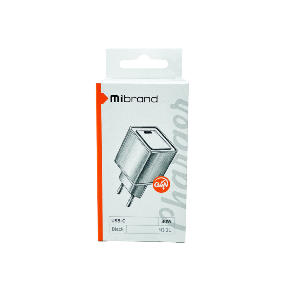 Mibrand MI-31 GaN 30W Travel Charger USB-C Black – сетевое зарядное устройство с одним USB-C выходом с поддержкой PD 30 Вт.