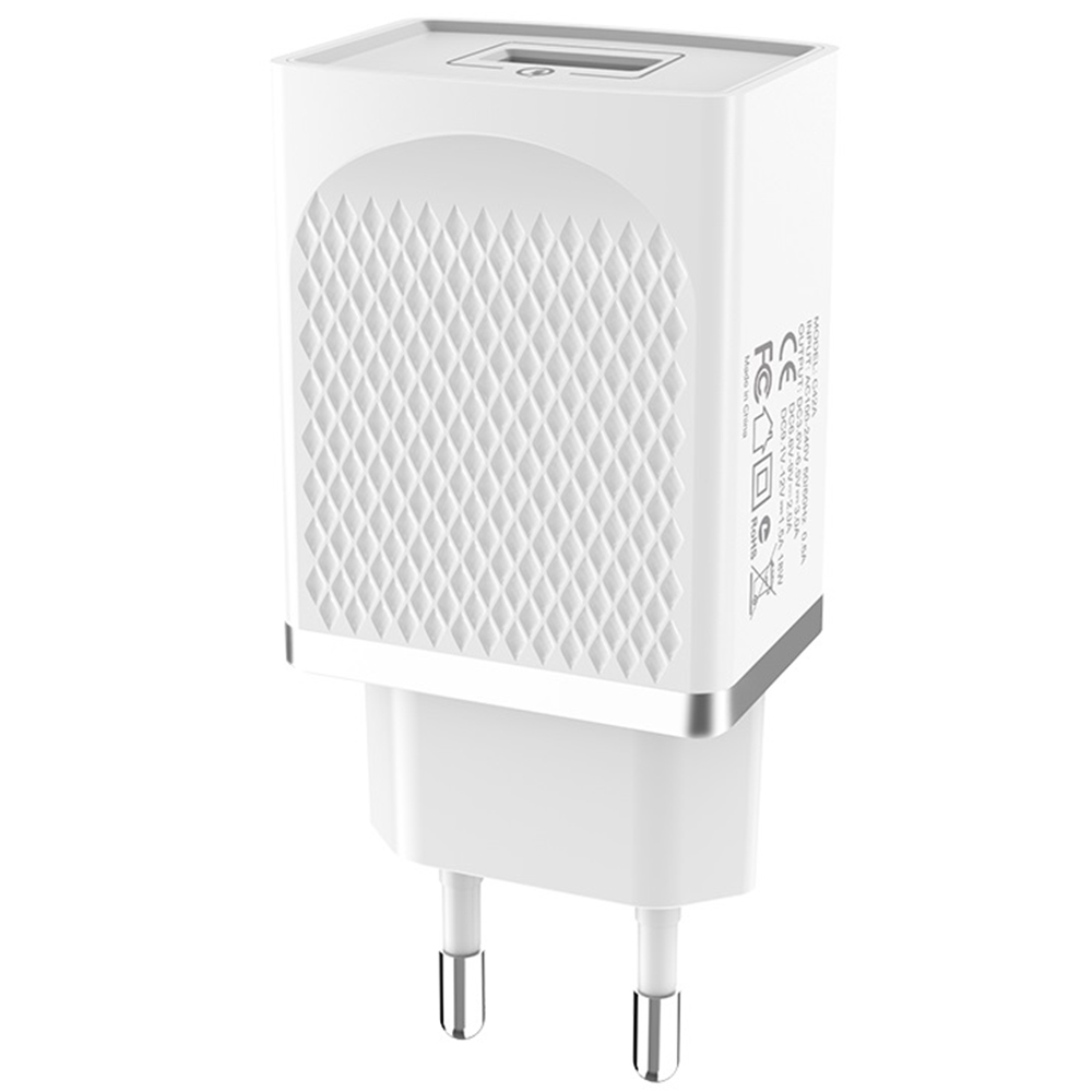 Универсальное зарядное устройство Hoco C42A с одним USB портом и европейской вилкой. Это устройство позволяет заряжать как смартфоны и планшеты с обычной зарядкой, так и аксессуары с поддержкой технологии Quick Charge.