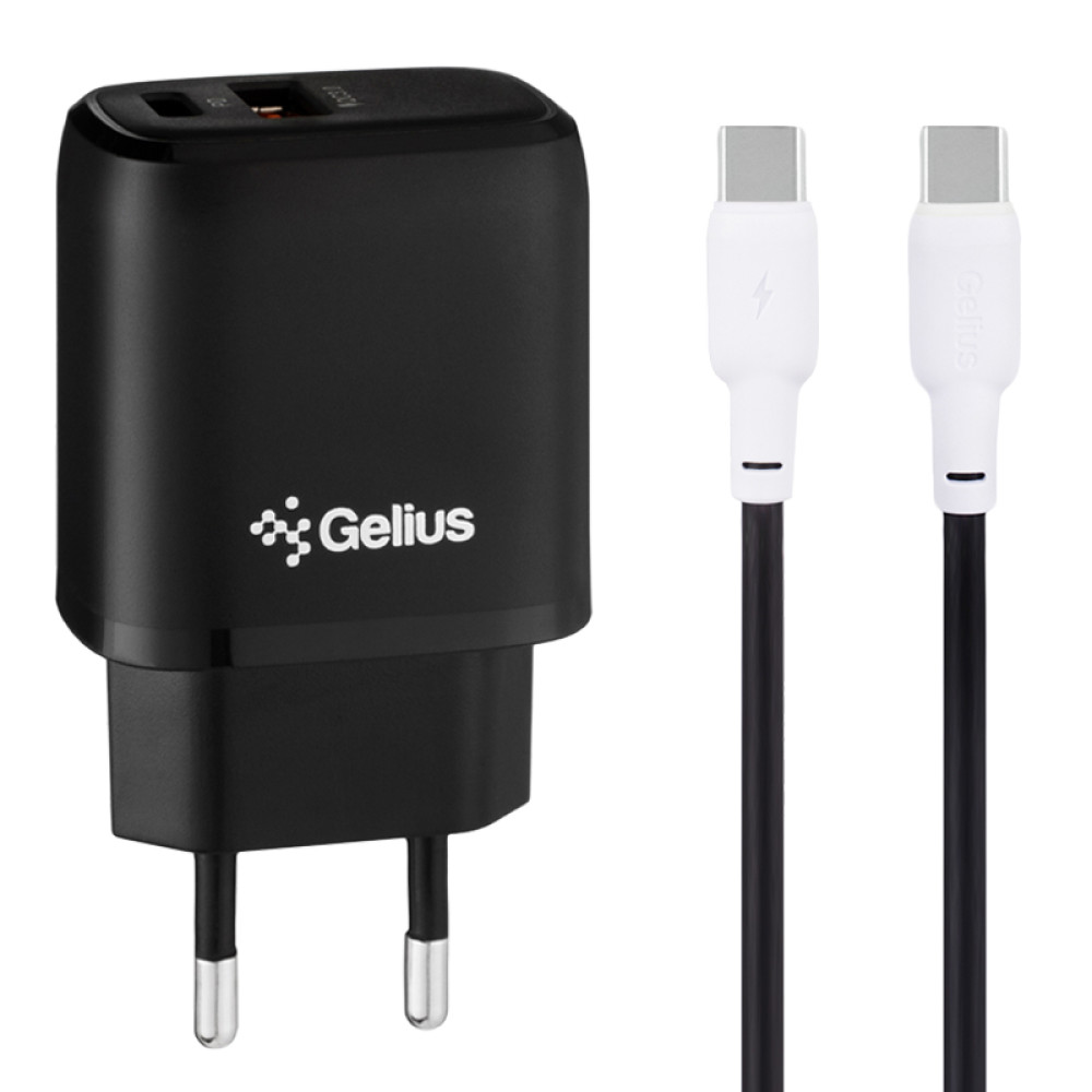 Удобная и быстрая зарядкаGelius X Duo обеспечивает устройства током для быстрой зарядки мощностью до 20 Вт, позволяя быстро зарядить смартфон или планшет.Классический дизайн и качество материалаGelius X-Duo выполнен из высококачественных негорючих материалов, имеет 5 видов защиты, в том числе от высоких температур и защиту против скольжения, что гарантирует надежность и прочность продукта.Поддерживает быструю зарядкуUSB-PD и QC 3.0 Fast Charging может заряжать устройство на 70% быстрее стандартной зарядки. Это означает, что вам потребуется гораздо меньше времени для полной зарядки устройства.Интеллектуальный чип управленияИнтеллектуальная система управления, которая в зависимости от устройства выдает требуемое напряжение и ток. Таким образом, аккумулятор надежно защищен и зарядка максимально безопасна и быстра.Характеристики:Быстрая зарядка: PD+Quick Charge 3.0Выходной ток: 3 AВыходные интерфейсы: USB Type-C, USBВозможность заряжать 2 гаджета одновременноКабель в комплекте Type-C/Type-CМощность: 20 Вт.
