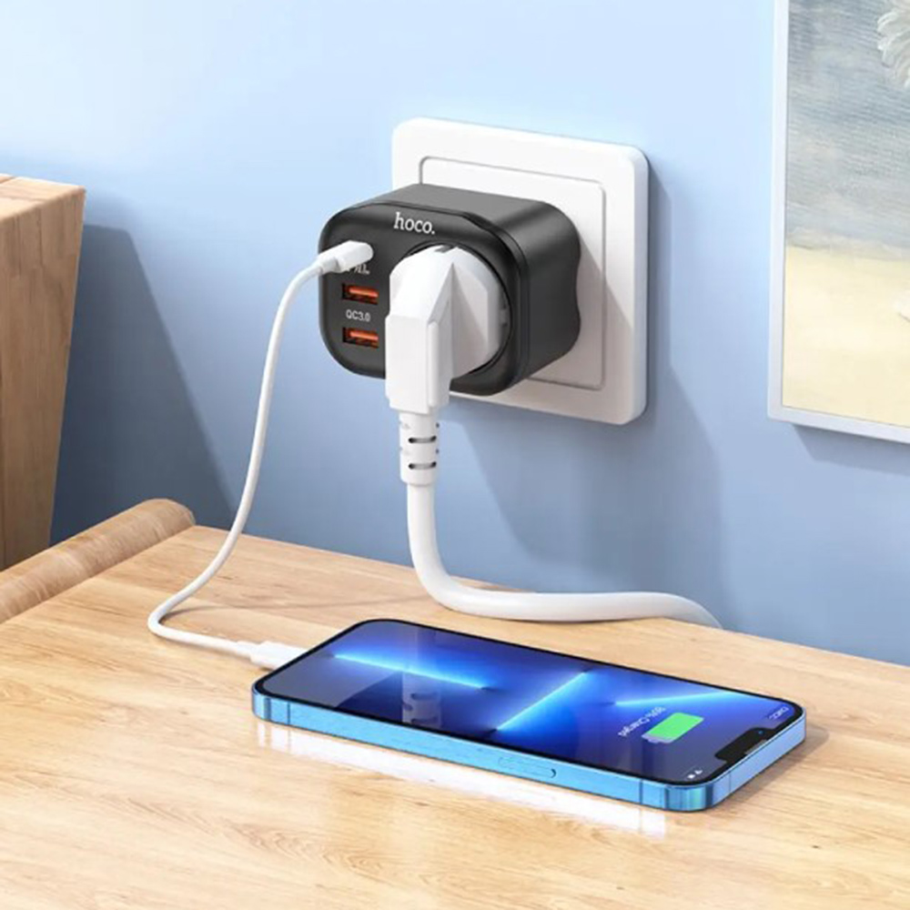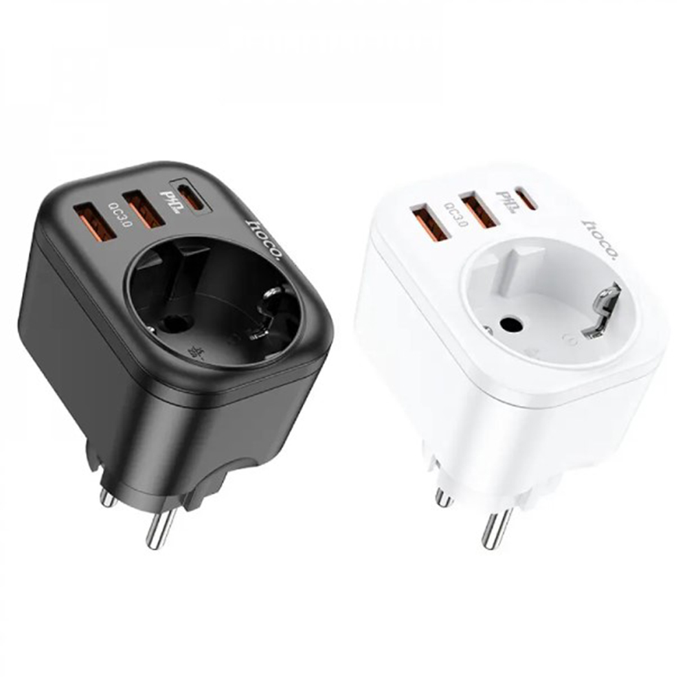 Hoco NS3 – это устройство для зарядки гаджетов, в котором есть 2 USB-порта, 1 Type-C порт, а также евро розетка. Особенность такого зарядного устройства в его многофункциональности. Он заменит 3 адаптера, а благодаря встроенной розетке у вас будет дополнительное место для подключения различных электроприборов. Согласитесь, устройство сэкономит много места и времени.