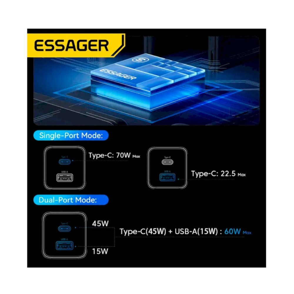 Зарядное устройство ESSAGER EZCT70 обеспечит быструю и безопасную зарядку для совместимых устройств, при этом компактные размеры позволяют легко хранить и переносить устройство, не занимая много места в рюкзаке. ESSAGER EZCT70 объединяет все преимущества GaN-технологии — невероятную мощность, отличную энергоэффективность и ультракомпактность.