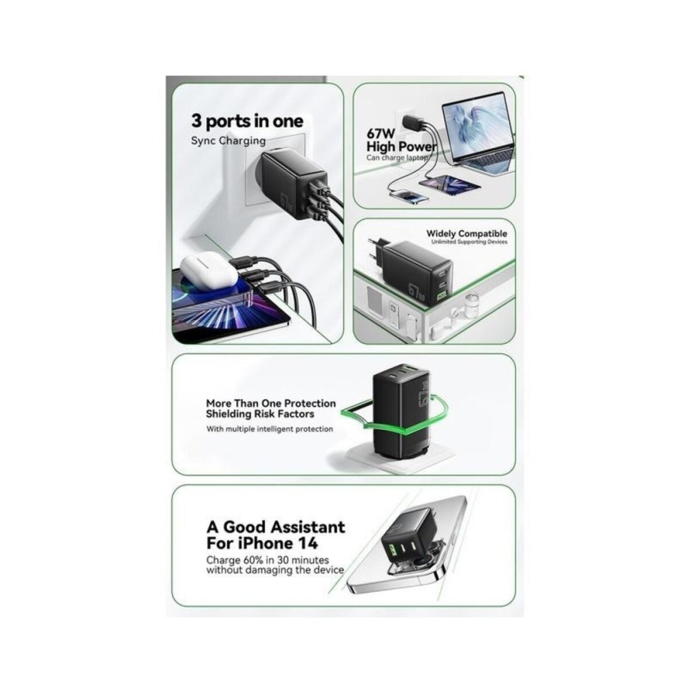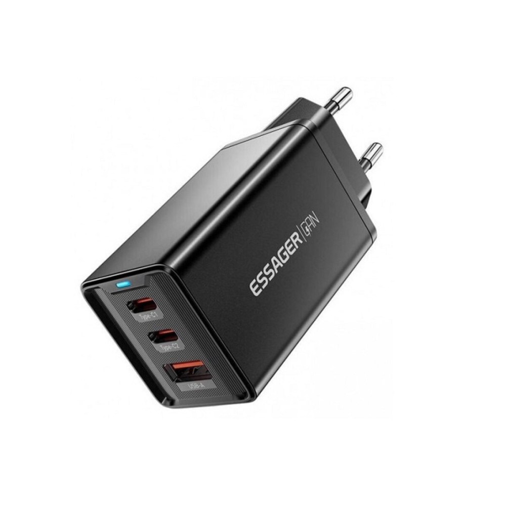 ESSAGER Kolsang 67W GaN Travel Charger 2C+A Black ─ это идеальный выбор для тех, кто ищет надёжное, компактное и многофункциональное зарядное устройство для повседневного использования и путешествий.