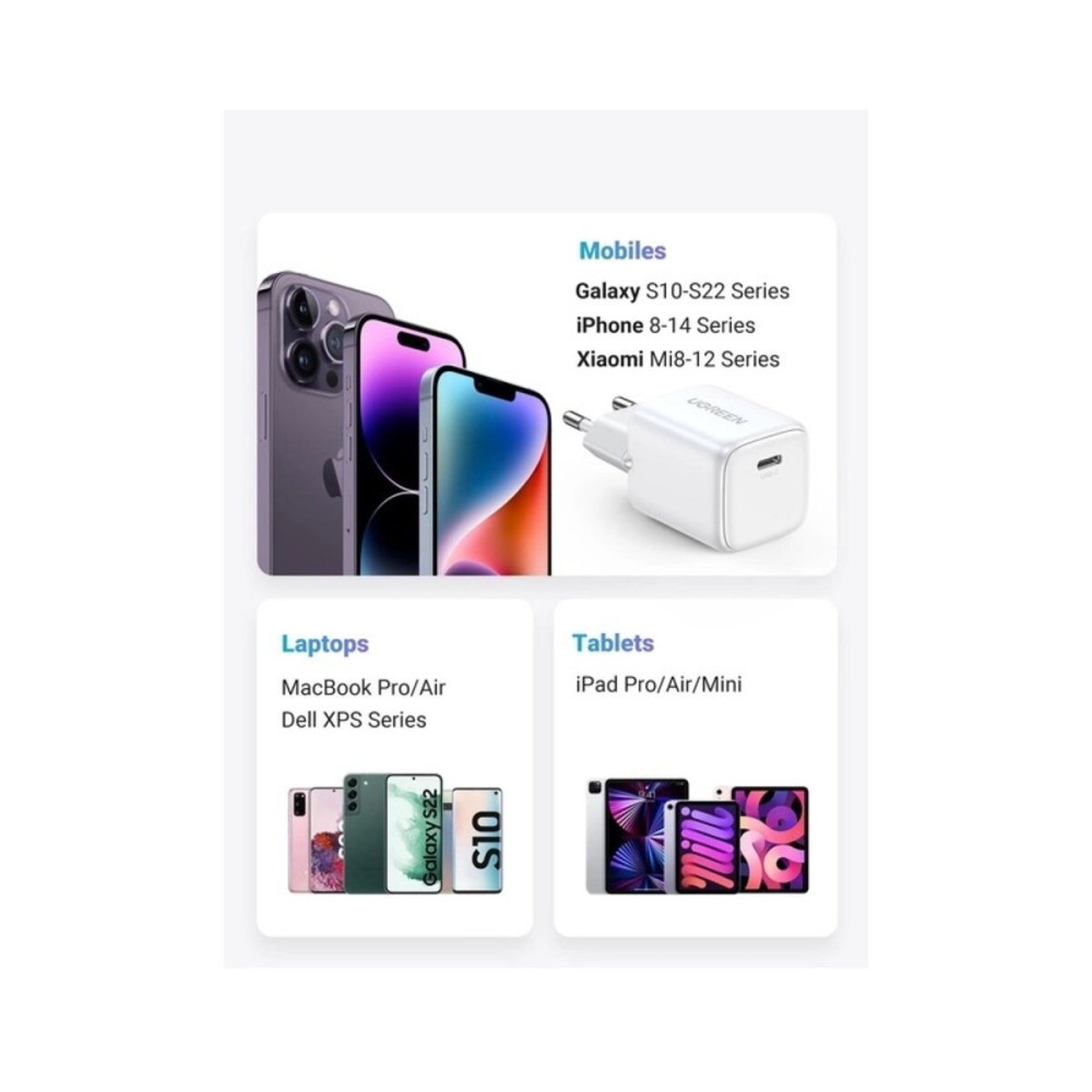 Маленький и мощный со сверхбыстрым чипом GaN – особенно для серии Nexode – вы получаете революционную производительность и невероятные размеры. Зарядное устройство для Ugreen Nexode 20W GaN USB-C может зарядить ваш iPhone 14 от 0 до 60% всего за 30 минут. В 3 раза быстрее обычных зарядных устройств.