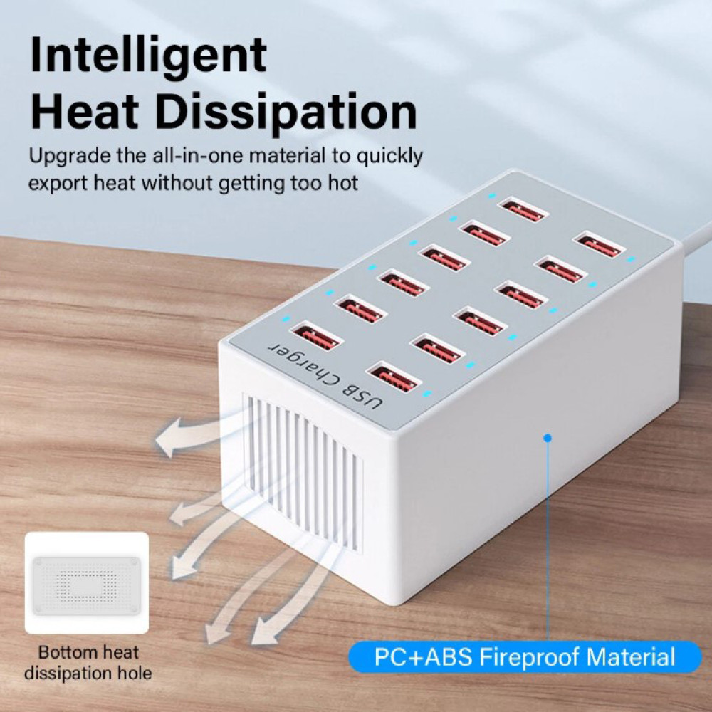 12 USB-портов для одновременной зарядки нескольких устройств