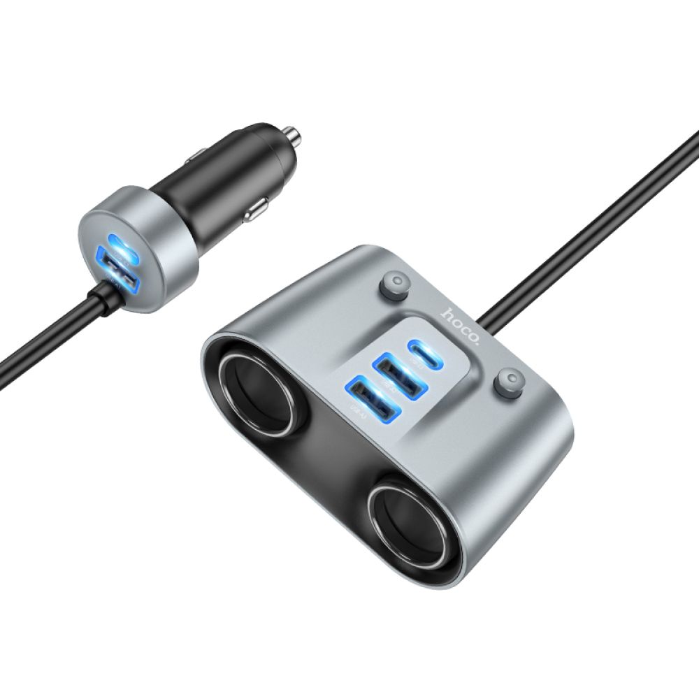 Авто зарядний пристрій Hoco Z51 Establisher 2-in-1 - це універсальний аксесуар, розроблений для максимально комфортного заряджання сучасних гаджетів в автомобілі. Пристрій виділяється стильним дизайном і оригінальною, практичною конструкцією. Він складається з двох частин, які з'єднані одна з одною кабелем: адаптером з двома роз'ємами для безпосереднього встановлення в гніздо прикурювача та модулем з додатковими 3 роз'ємами і 2 гніздами прикурювача. Таке рішення дасть змогу зі зручністю заряджати ґаджети не тільки водієві, а й пасажирам, а також збереже можливість під'єднання до джерела живлення сумісних автомобільних аксесуарів: пилососів, FM-трансмітерів, прикурювачів, нагрівачів. Корпусні деталі пристрою якісно зібрані, виготовлені з міцного ABS пластику, що в поєднанні з надійними електронними компонентами гарантує стабільний, абсолютно безпечний процес заряджання. Адаптер оснащений роз'ємами Type-C (C1) і USB (A1), а додатковий модуль - парою USB портів (A2 і A3), роз'ємом Type-C (C2) і двома гніздами прикурювача. Роз'єм Type-C (C1) підтримує швидке заряджання сумісних ґаджетів за протоколами PD, QC, FCP і AFC з максимальною потужністю на виході 30W (5V/3A, 9V/3A, 12V/2.5A), USB-порт (A1) - QC, FCP і AFC з потужністю до 30W (15V/3A, 9V/2A, 10V/2A, 12V2.5A). Загальна сила струму на їхньому виході може досягати 3A за напруги 5V, а на виході роз'ємів C2, A2 і A3 - 3.4A за напруги 5V. Кожен з роз'ємів оснащений приємним для очей LED підсвічуванням, яке зробить використання аксесуара максимально комфортним. Потужність на виході гнізд прикурювача становить 100W. Загальна максимальна потужність на виході становить 147W. Модель оснащена системами багаторівневого захисту та інтелектуального розподілу потужності. Довжина кабелю становить 75см.