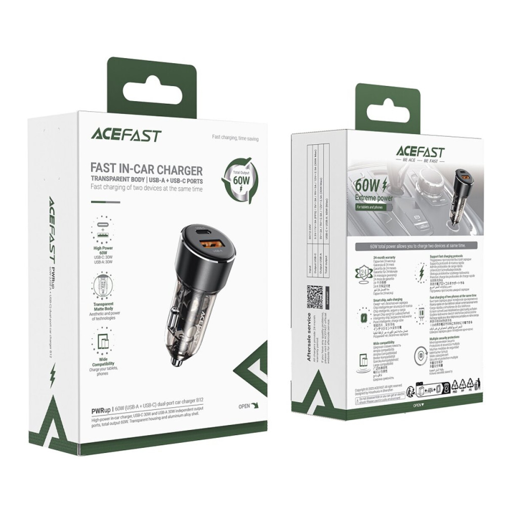 ACEFAST B11 — это современное, надежное и функциональное автомобильное зарядное устройство. Оно оснащено двумя портами, что позволяет заряжать несколько устройств одновременно. Высокая мощность и поддержка протоколов быстрой зарядки PD и QC делают его незаменимым помощником для каждого водителя.