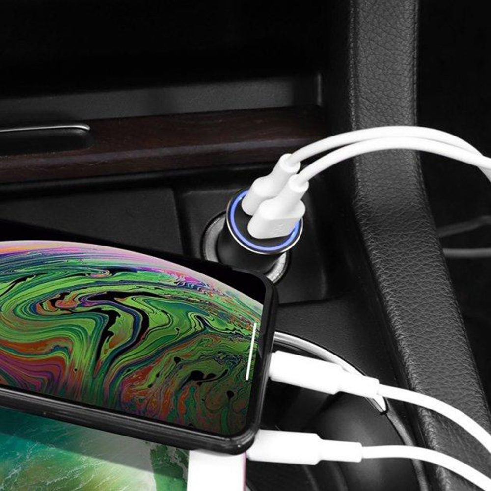 Материал корпуса изготовлен из высококачественного пластика и крепкого алюминиевого сплава. Дизайн классический и компактный, поэтому не будет занимать лишнее место. Многоуровневая защита сделает зарядку безопасной, ведь не боится скачков напряжения, короткого замыкания и не перегревается. Синий LED-индикатор включается с началом работы устройства, источник питания легко будет найти в темноте, но не слишком яркий, чтобы не ослепить во время поездки ночью. Максимальный ток заряда составляет до 3,1А.
