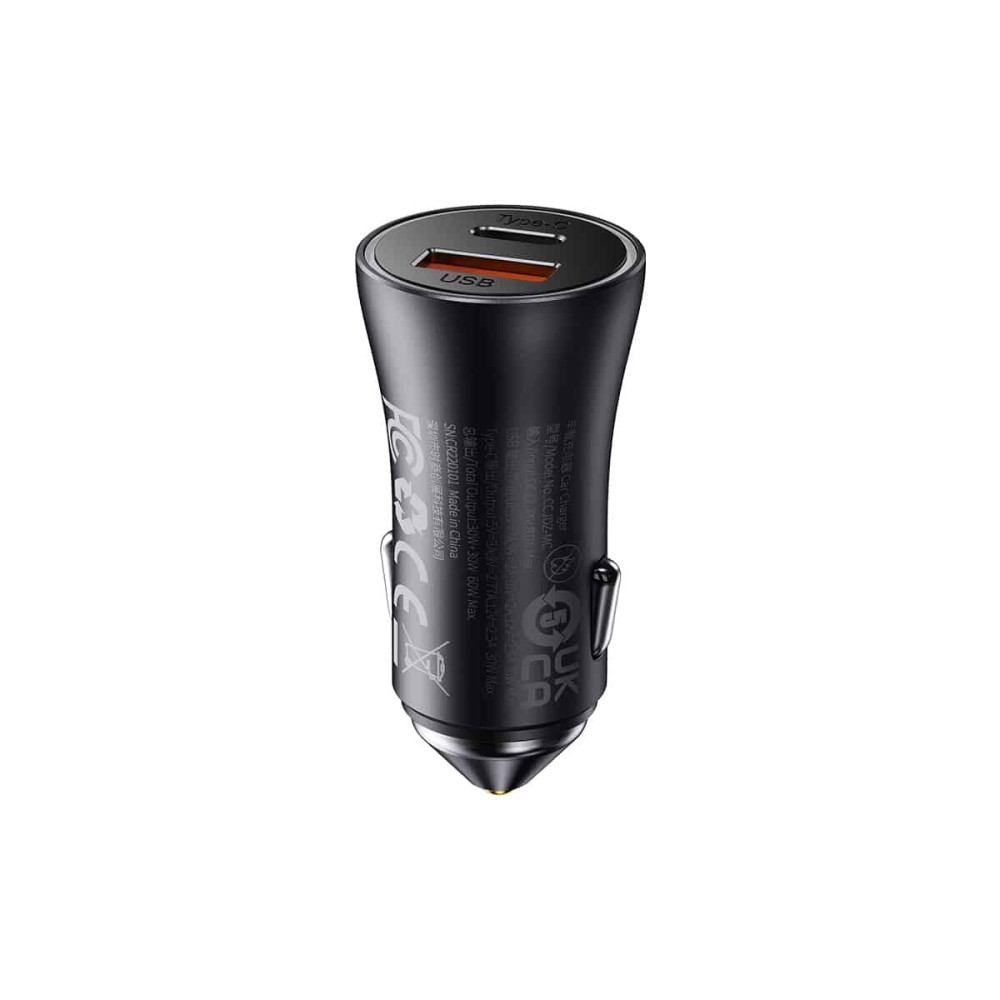 Baseus Golden Contactor Max Dual Fast Charger Car Charger U+C 60W Dark Gray ─ это автомобильное устройство для зарядки гаджетов с технологией Quick Charge. Устройство имеет 2 USB-входа: USB и Type-C. С его помощью можно быстро заряжать различные девайсы в автомобиле. Аксессуар имеет стильный дизайн, внешний корпус выполнен из металла, который устойчив к высоким температурам и внешним повреждениям. Для безопасности гаджетов в устройство встроена интеллектуальная защита от короткого замыкания, перепадов напряжения, перегрева, перегрузки и перезарядки.