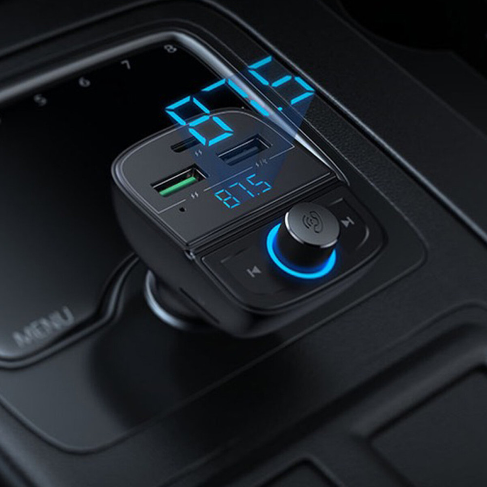 FM-трансмиттер + Bluetooth 5.0 — передаёт музыку с телефона на автомагнитолу через радиочастоту.