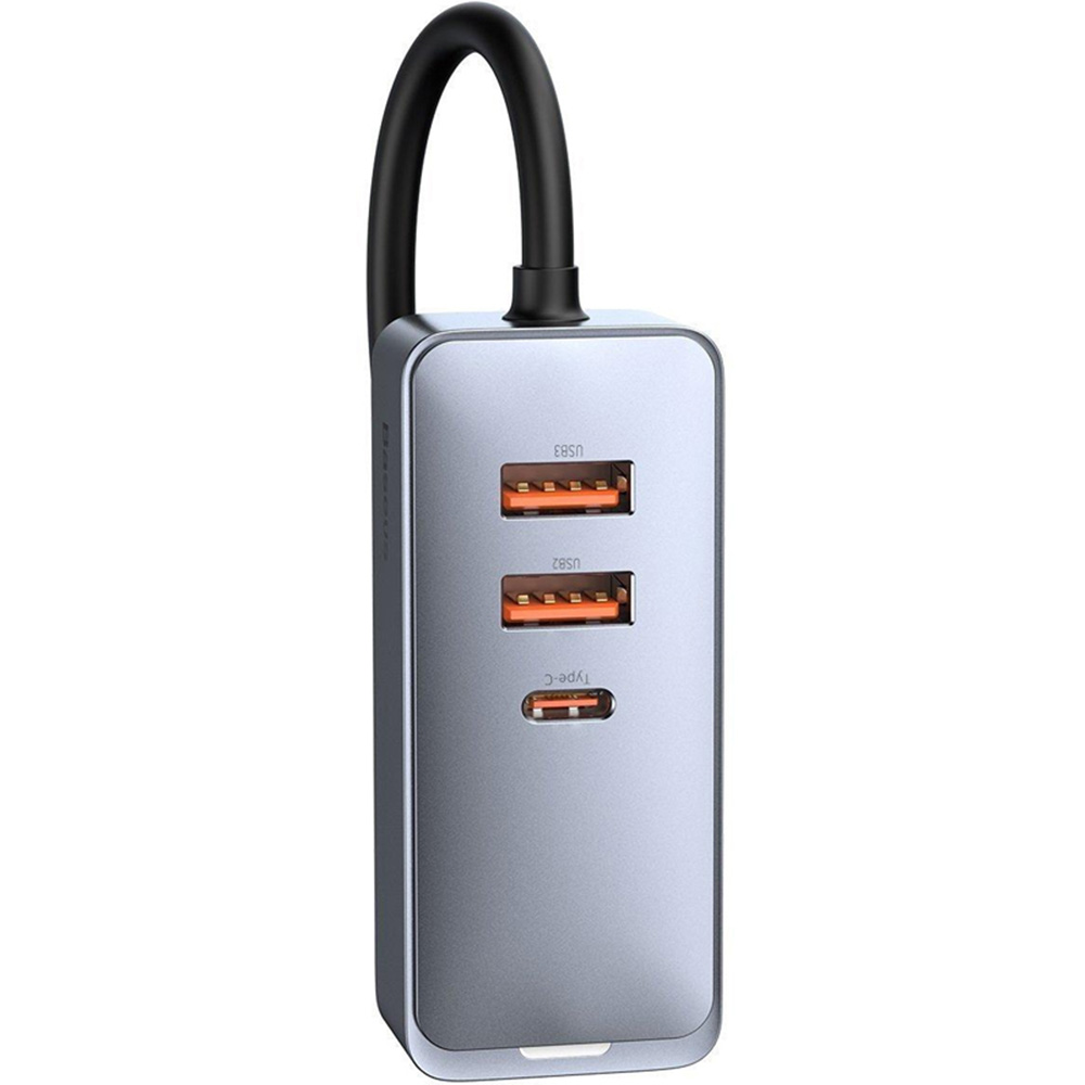 Многопортовое автомобильное зарядное устройство для быстрой зарядки PPS с удлинителем Baseus Share Together PPS multi-port Fast charging car charger with cord 3USB 1Type-C 3A 120W QC/PD 1.5m (CCBT-B0G) Автомобильное зарядное устройство Baseus Share Together позволяет быстро заряжать до 4 устройств одновременно (телефоны, аккумуляторы, планшет и ноутбук). Его общая выходная мощность достигает 120 Вт. Удлинитель длиной 1,5 м позволяет удобно использовать его также пассажирам на задних сиденьях. Изделие совместимо с автомобилями напряжением аккумулятора от 12 В до 24 В. Основные особенности Baseus Share Together PPS multi-port: Наличие 4 портов постоянного ток ( 3USB, 1Type-C, 120Вт макс) с функцией быстрой зарядки Встроенные смарт-чипы обеспечивают стабильное управление мощностью, интеллектуальное распознавание требуемого напряжения для различных устройств и безопасную зарядку Удлинитель длиной 1,5м Удобная клипса для крепления к сиденью Компактный размер, стильный вид Универсальное для моделей автомобилей с аккумулятором 12В - 24В.