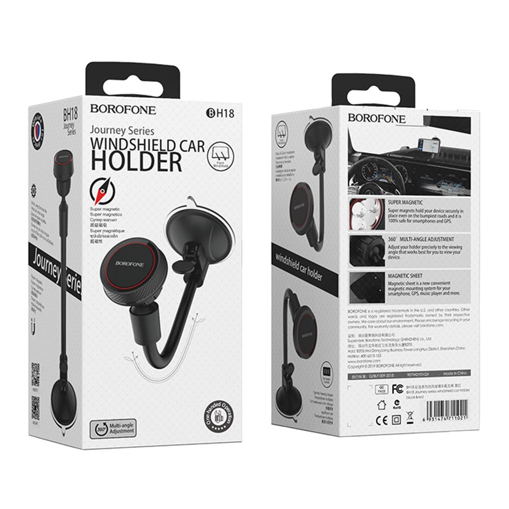 Автодержатель Borofone BH18 - очень полезный аксессуар для водителей. Трудно представить поездку без Холдер. Данный автодержатель может закрепляться как на панели авто, так и на лобовом стекле с помощью присоски.