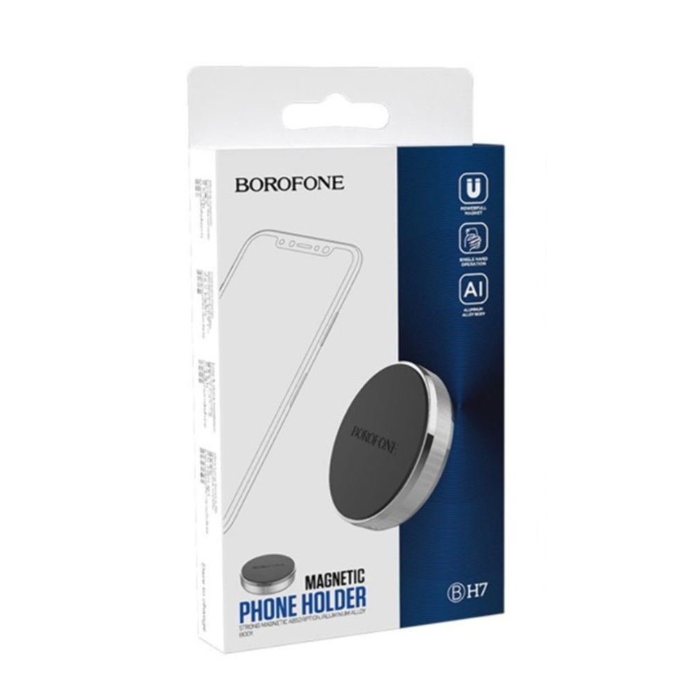 Автодержатель Borofone BH7 - отличный выбор для комфортного пользования телефоном в салоне авто. Модель представлена в нескольких цветовых решениях. Минимализм в дизайне моделей бренда Borofone выделяет аксессуар среди конкурентов. Устройство имеет небольшие размеры и вес, выполнено в округлой форме из прочного металла с резиновыми составляющими. Используется магнитное крепление с телефоном, под заднюю панель которого размещена или наклеена специальная пластина. Мощный магнит не оказывает негативного влияния на работоспособность смартфонов. В комплекте две металлические пластины. Крепление держателя осуществляется с помощью приклеивания к поверхностям.