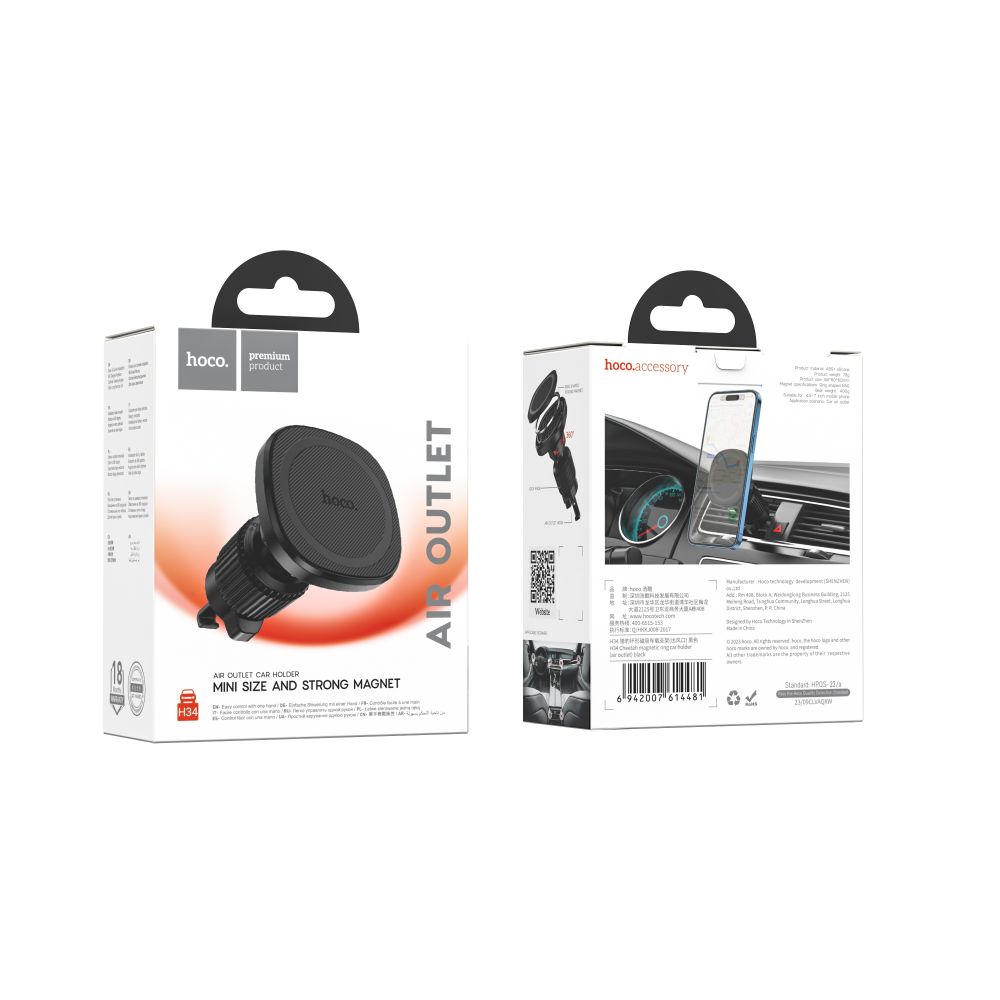 Автодержатель Hoco H34 Magnetic Ring – это незаменимый аксессуар для любого автолюбителя. Он поможет легко, всего одной рукой зафиксировать смартфон в необходимом положении для навигации, удобного управления музыкой или звонками.
