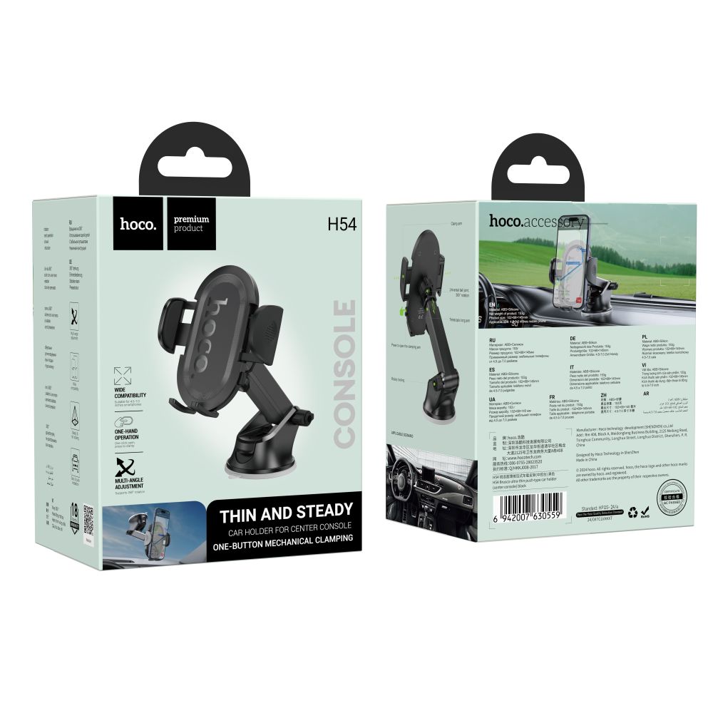 Hoco H54 обеспечивает удобное расположение смартфона в салоне, позволяя безопасно пользоваться навигацией, звонками и мультимедиа во время поездок.