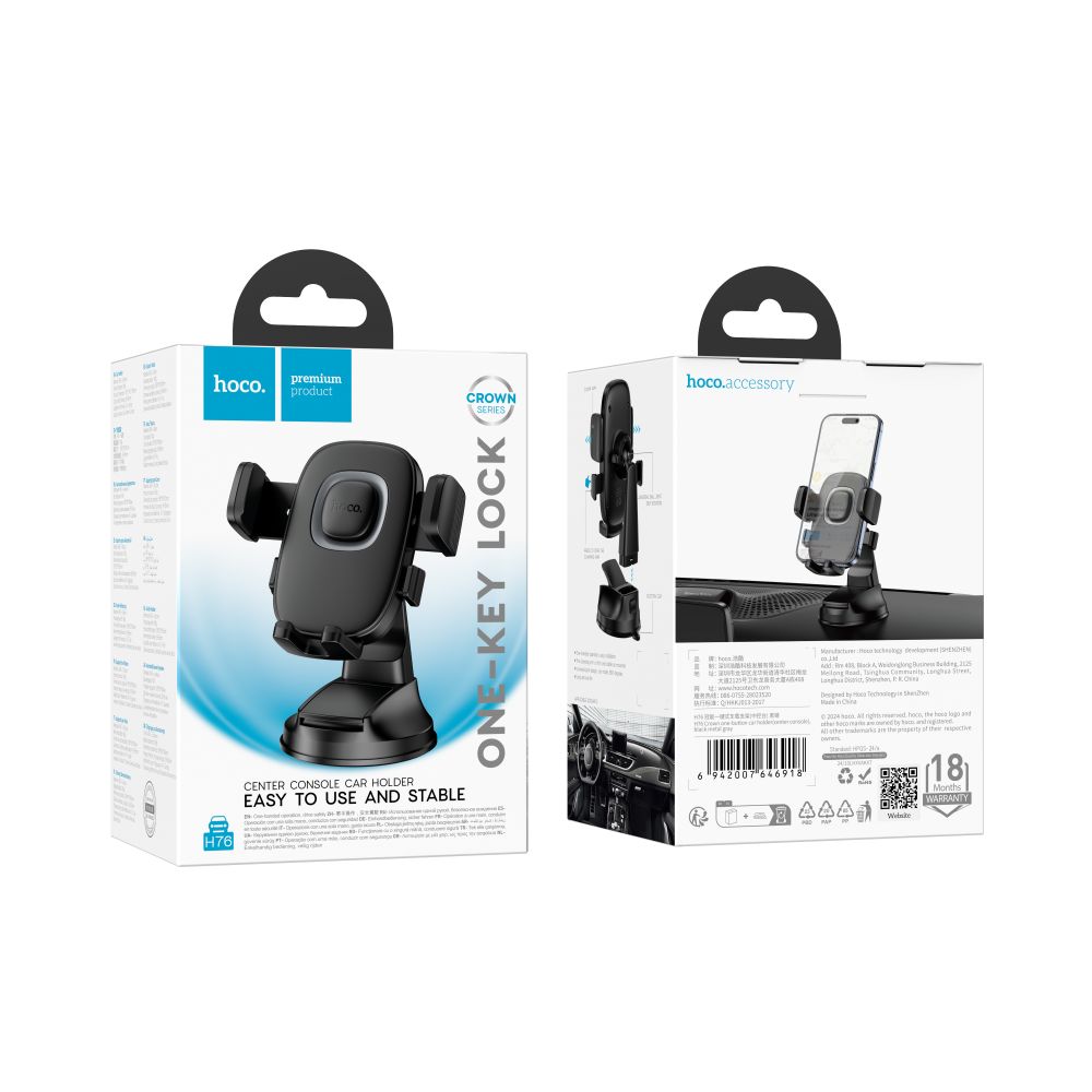 Автодержатель Hoco H76 обеспечивает надёжную фиксацию смартфона в салоне автомобиля, позволяя водителю безопасно пользоваться навигацией и мультимедиа даже во время движения по неровной дороге.