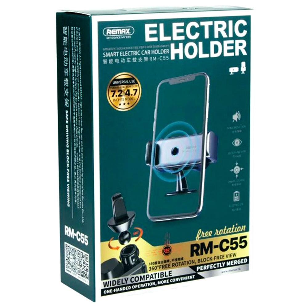Холдер Remax RM-C55 – это универсальное устройство, на котором крепится смартфон для безопасной и более удобной поездки. Часто бывает, что в пути вы пользуетесь навигаторами на телефоне, и в таком случае холдер становится незаменимым помощником. Устройство автоматически подбирает нужный размер и фиксирует смартфон, если вы включите его к прикуривателю или павербанку. Очень удобно и то, что в комплекте идут два сменных крепления. С помощью одного вы сможете зафиксировать держатель на торпедо на клейкой основе, а другой – фиксируется на вентиляционной решетке с помощью прищепки.