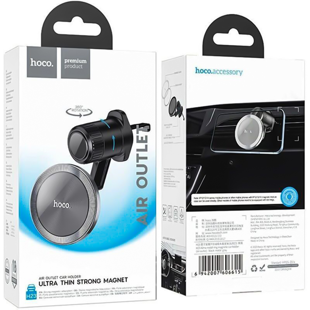 Hoco H23 – компактный автомобильный магнитный держатель предназначен для установки в дефлектор. Иногда во время поездок необходима, к примеру, карта, которую вы включаете на телефоне, и для более удобного просмотра этой карты вам пригодится именно такой холдер. С ним навигация, сообщения или звонки станут гораздо удобнее и безопаснее. Подойдет для всех мобильных устройств, диагональ которых составляет 4.5-7.0 дюймов.