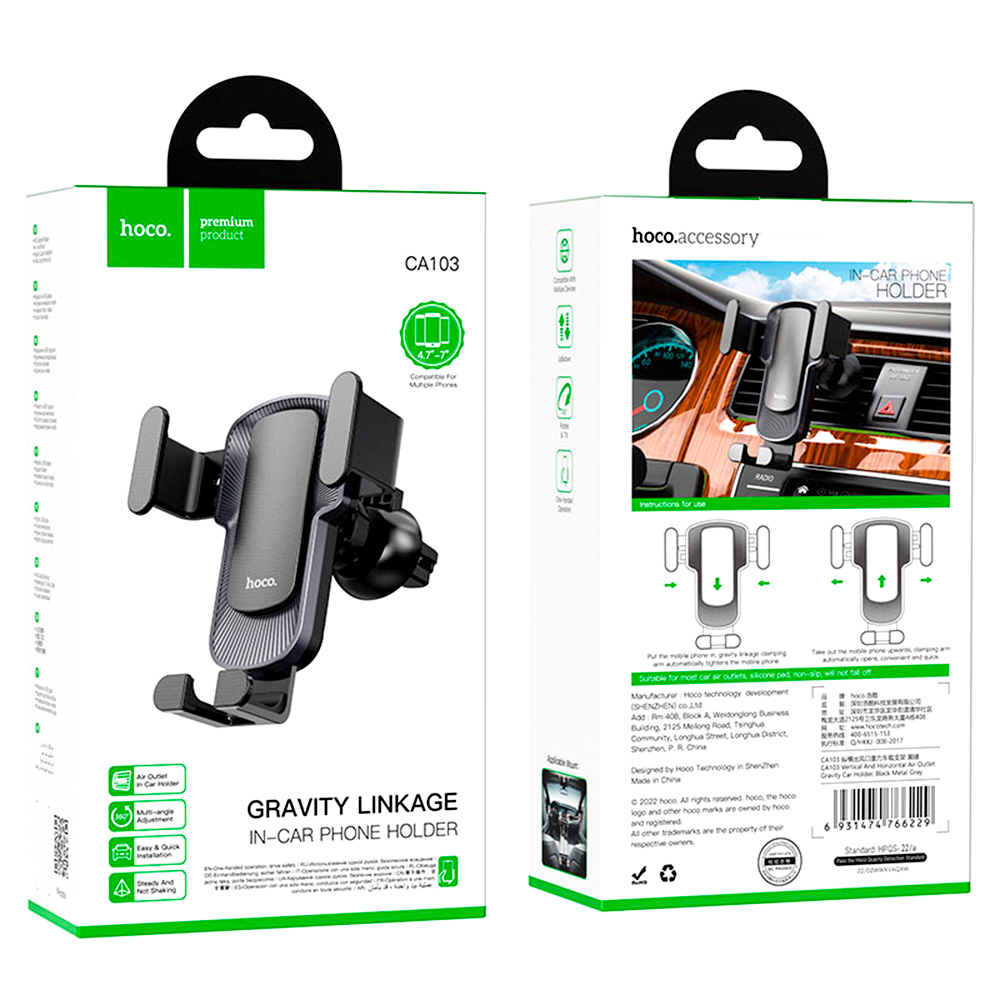 Автомобильный держатель Hoco CA103 предназначен для гаджетов от 4.5 до 7 дюймов. Данная модель способна обеспечить своему пользователю более комфортную и безопасную поездку. Ведь благодаря держателю водитель будет гораздо меньше отрываться от дороги, а телефон всегда будет близко к руке.
