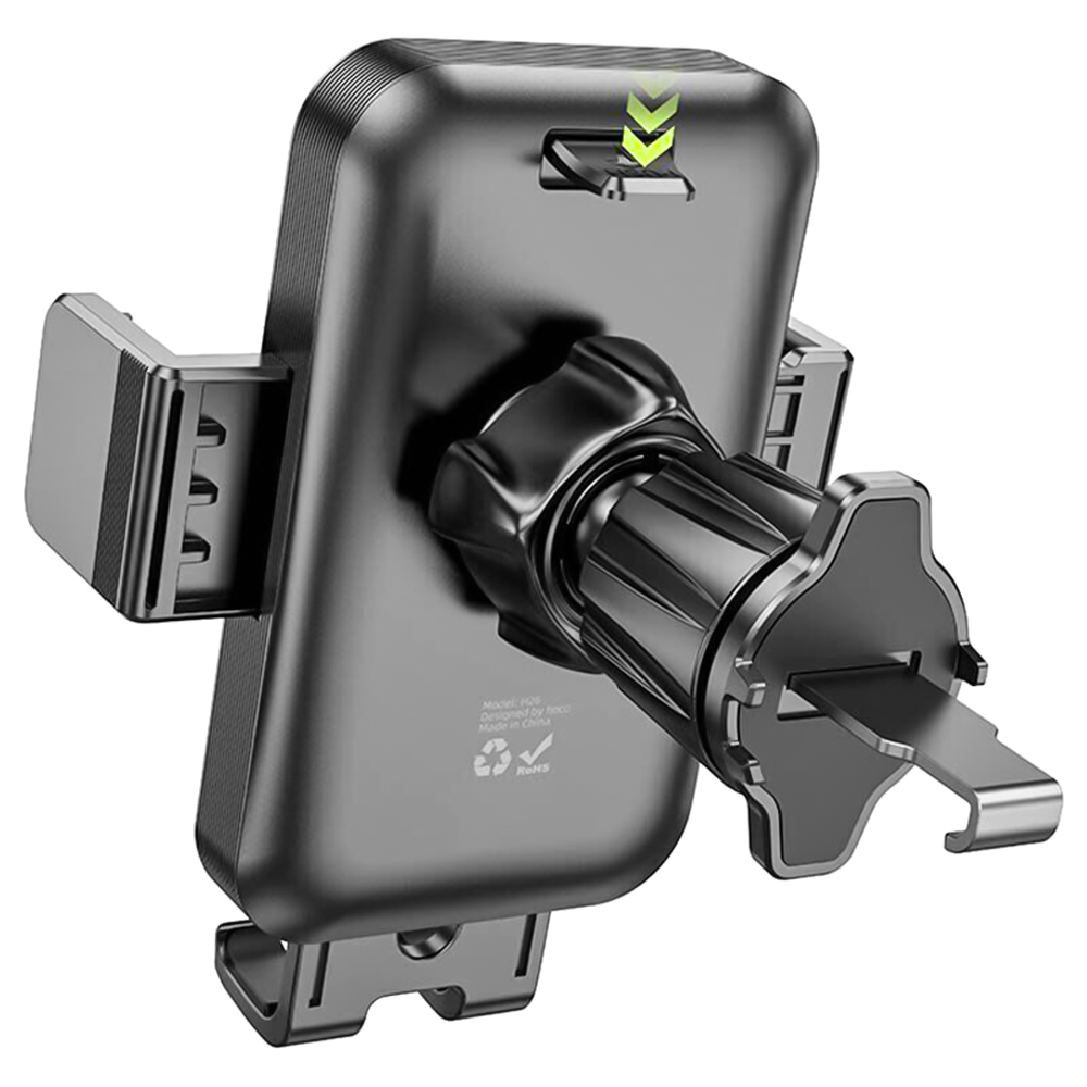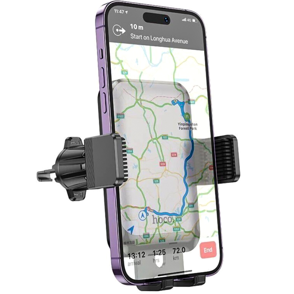 Автомобильный держатель Hoco H26 – это стильный и надёжный аксессуар для тех, кто ценит мобильность и удобство во время путешествий. Благодаря специальному крючку, он легко устанавливается на вентиляционную решётку автомобиля и надёжно фиксируется без риска поцарапать поверхность. Два прорезиненных зажима обеспечивают надёжное удержание смартфона даже при резких поворотах или внезапном торможении.