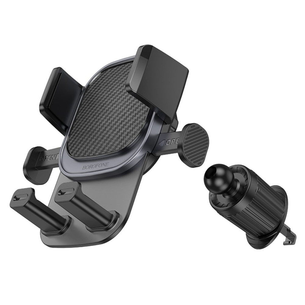 Держатель для телефона BOROFONE BH120 Delightful One-Button Car Holder (Air Outlet) Black Gray — это удобный автомобильный держатель, который крепится к вентиляционной решётке. Благодаря механизму с одной кнопкой, он позволяет быстро и легко устанавливать и снимать смартфон одной рукой. Эргономичный дизайн и прочная конструкция обеспечивают надёжную фиксацию устройства даже при движении по неровной дороге.