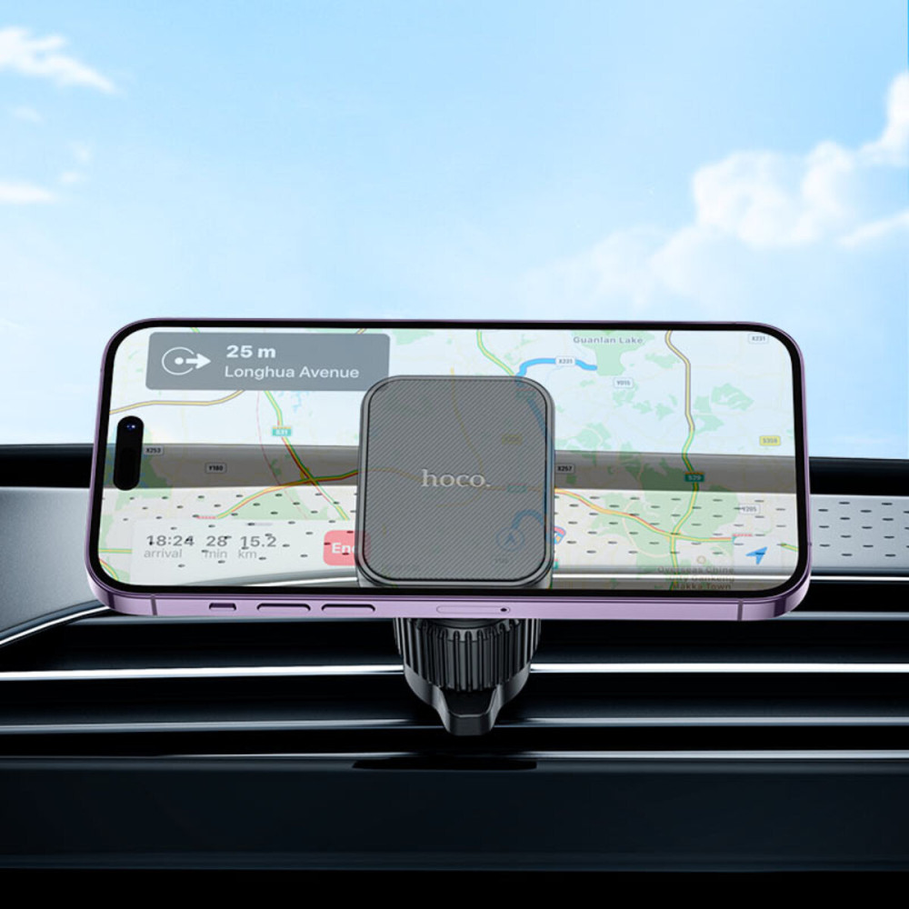HOCO H32 Cheetah — это автомобильный магнитный держатель для смартфона, устанавливаемый на вентиляционную решётку. Он обеспечивает надёжную фиксацию устройства благодаря мощной магнитной системе.