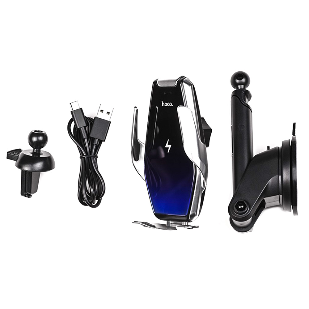 Автодержатель Hoco S14 - это идеальное решение для фиксации вашего гаджета в салоне авто. Аксессуар может одновременно выполнять функции холдера и беспроводного зарядного устройства для смартфонов, поддерживающих технологию QI. Его корпус выполнен из качественного и прочного ABS пластика и поликарбоната размером 190X173X76мм и весом всего 118г, а благодаря встроенному раздвижном зажиме в нем с легкостью можно закрепить смартфон шириной от 75мм до 130мм. В комплекте также идут два разных крепления: одно на дефлектор, а другое на стекло, торпеде с помощью вакуумной присоски. При этом благодаря шарнирной системе можно регулировать любое удобное положение телефона. Стильный современный дизайн держателя подчеркивает 2,5D стеклянная панель и специальная треугольная система фиксации гаджета, которая состоит из нижнего кронштейна и боковых зажимов, которые делают невозможным сползание или падения телефона, а мягкие подушечки на них защищают от возможных царапин или повреждений.