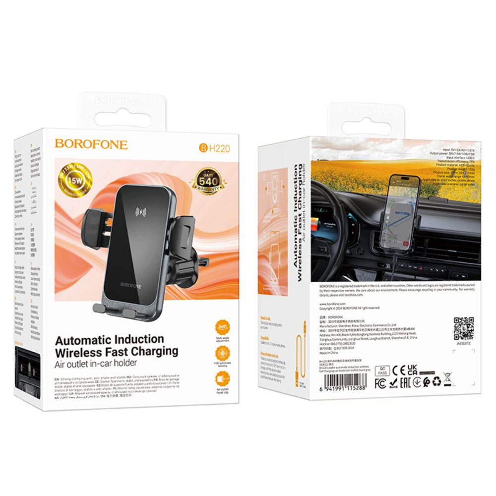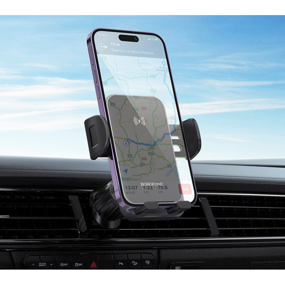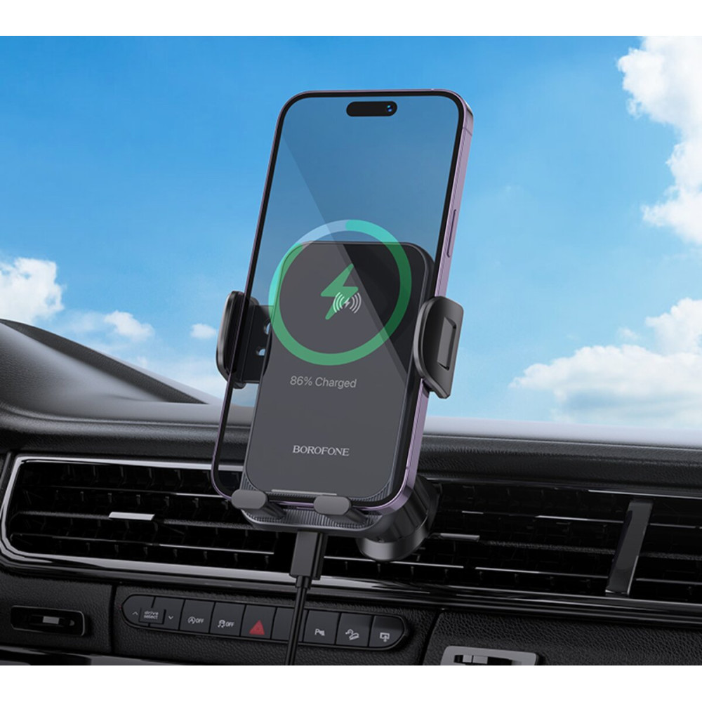 Автомобильный держатель Borofone BH220 Leader с беспроводной зарядкой — это современное и удобное устройство, обеспечивающее надежную фиксацию смартфона и его быструю зарядку во время поездок. Держатель оснащен инфракрасным датчиком, который автоматически распознает приближение устройства, и регулируемыми зажимами для его фиксации. Подходит для мобильных телефонов с диагональю экрана от 4,5 до 7 дюймов.